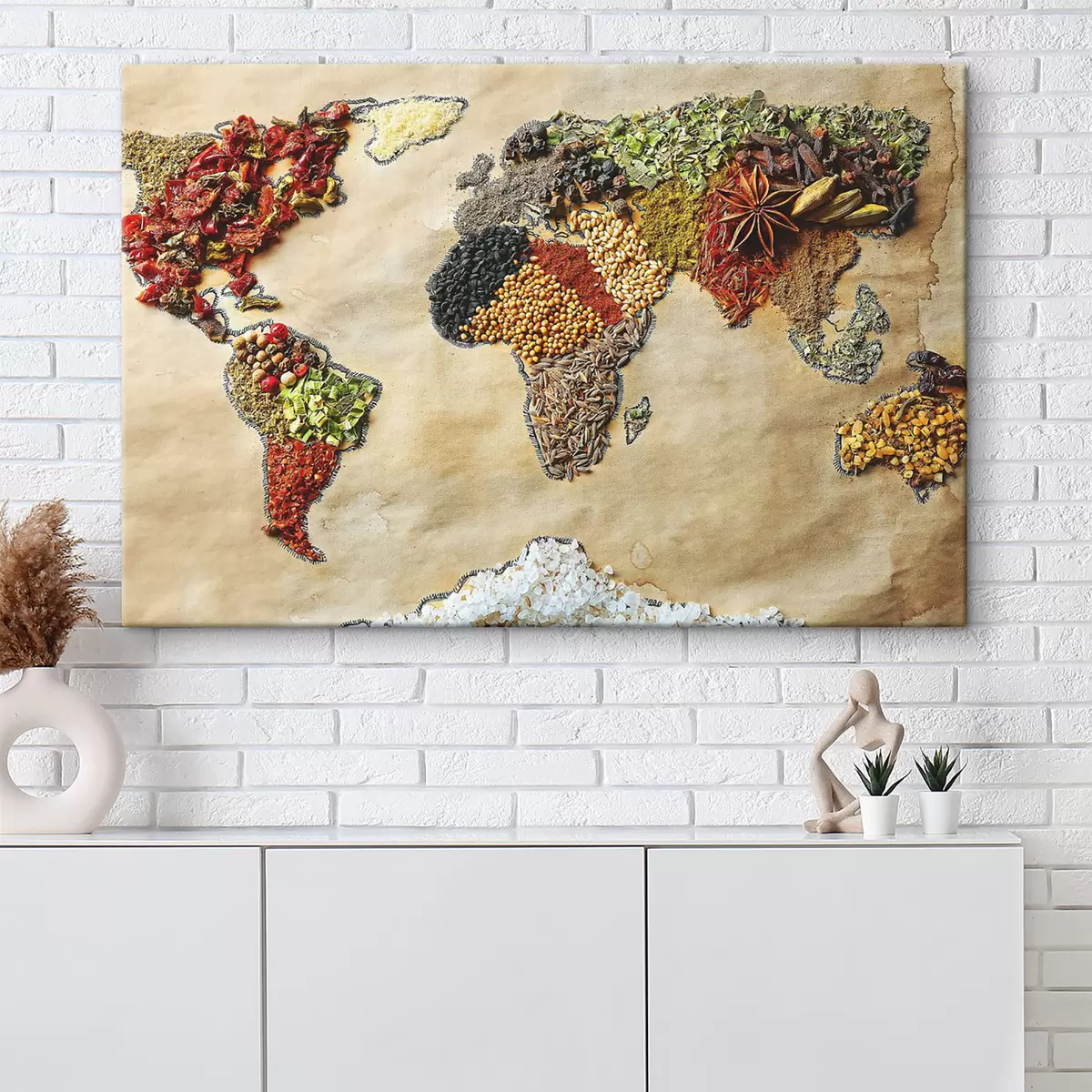 Schilderij Een wereldkaart gemaakt van verschillende specerijen Art. s37486