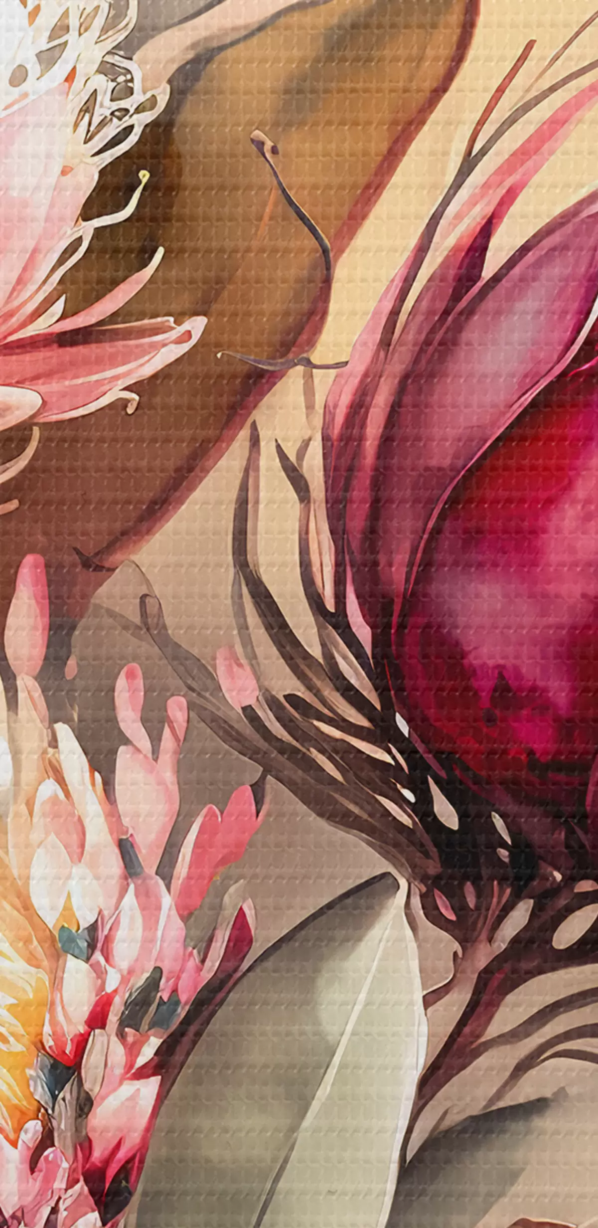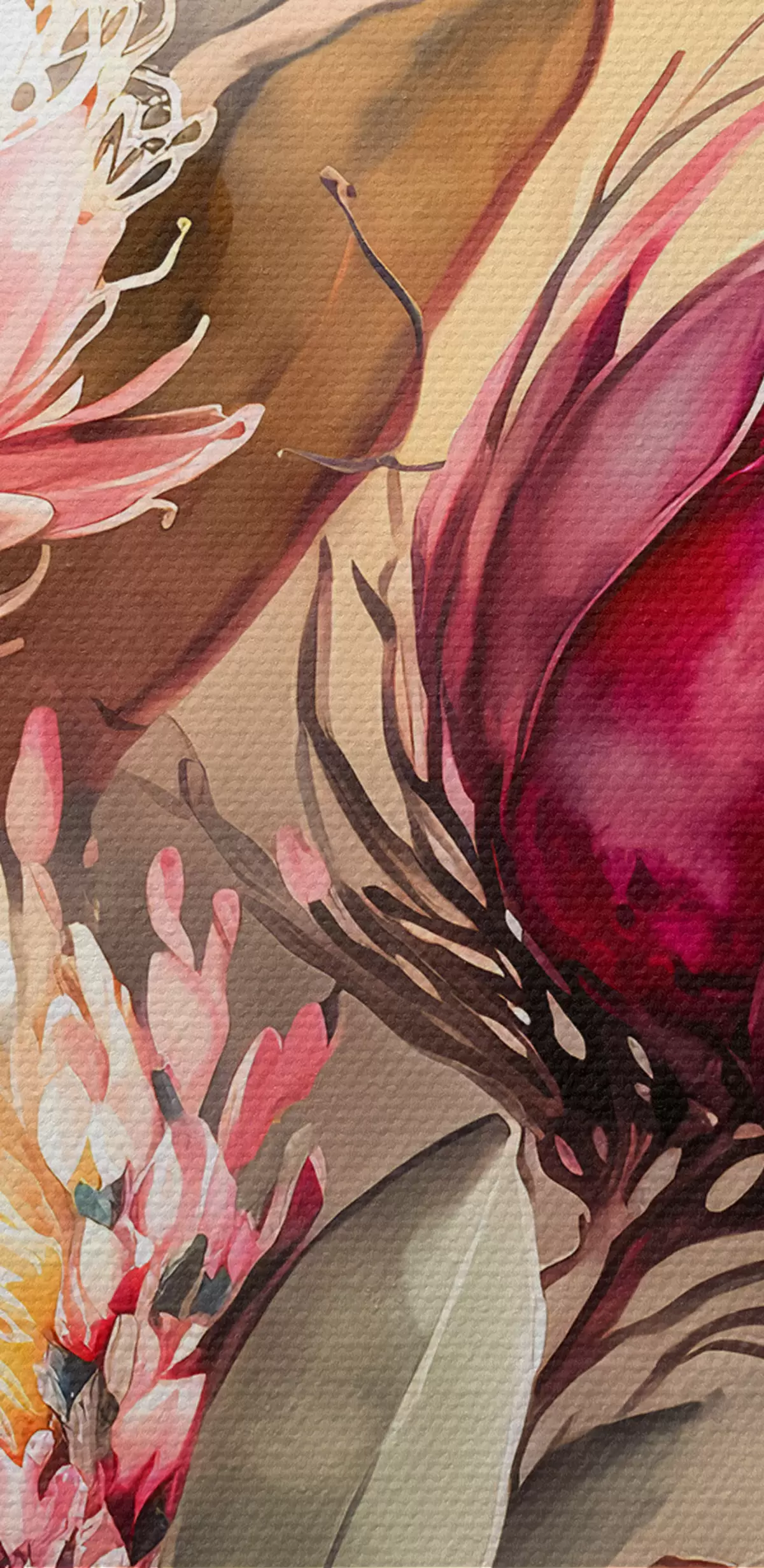 Er zijn drie soorten materiaal te bestellen: Economic Canvas - een dicht en duurzaam materiaal voor digitaal printen, identiek aan schildersdoek, waterdicht oppervlak, realistische weergave van details, materiaal met gemiddelde korrel. Premium Canvas - de textuur lijkt op die van schildersdoek (verweven kleine draden). Zachte, gedetailleerde reproductie van de afbeelding op een mat oppervlak. Eco-Premium - hoogwaardige 100% katoenen stof. Dankzij de natuurlijke katoenvezels is het materiaal duurzaam en slijtvast. Uitstekende kleurweergave en detail.