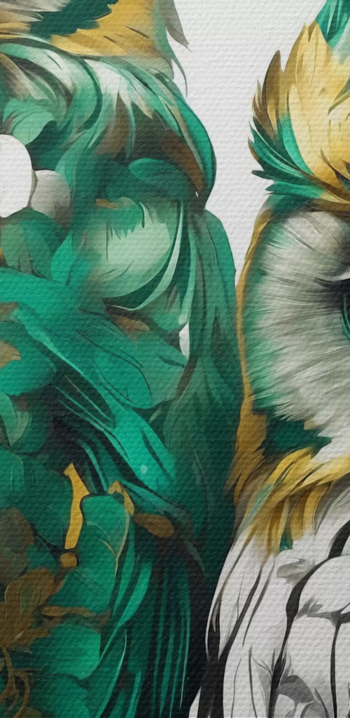 Schilderij Twee groene uilen in de bladeren Art. s37569