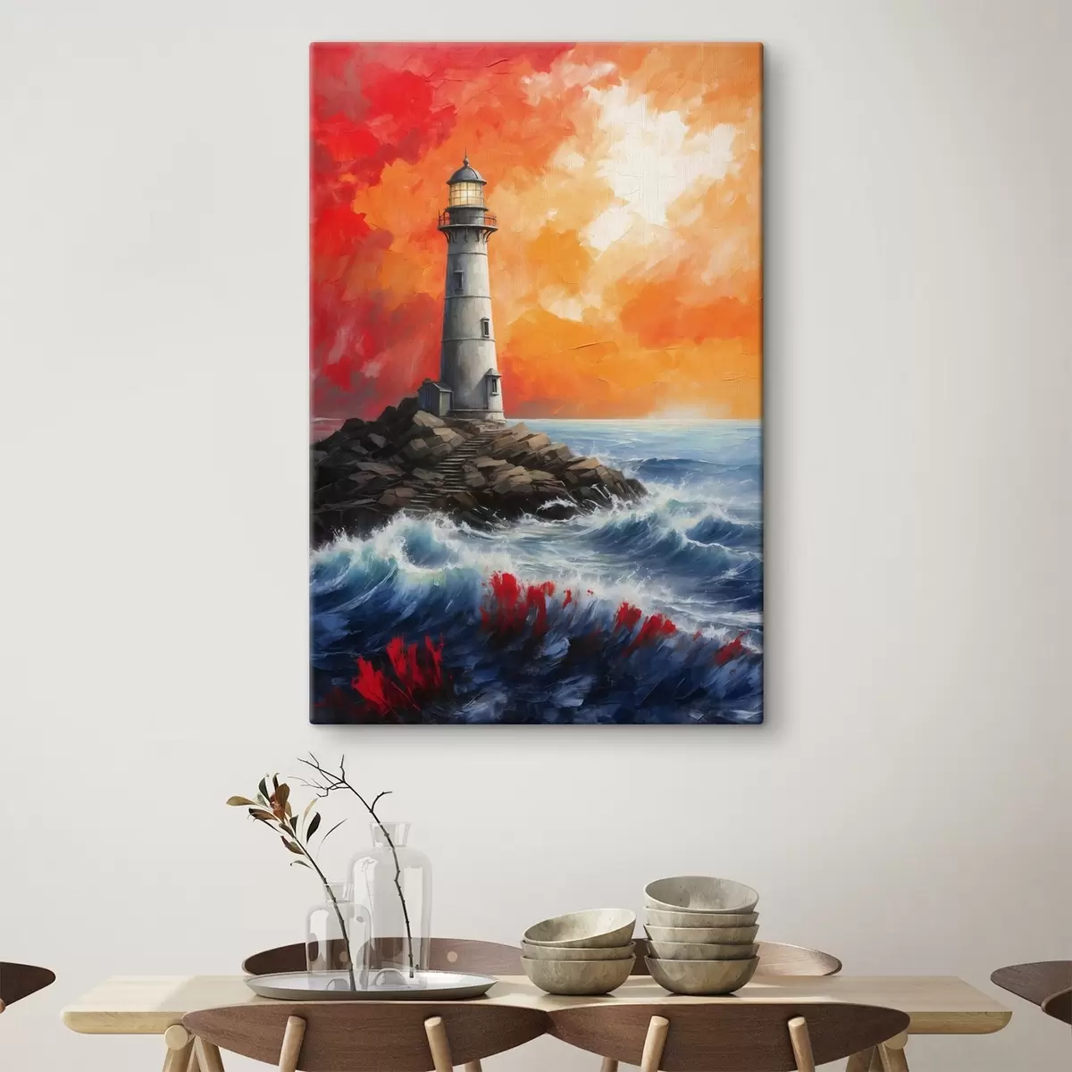 Schilderij Een vuurtoren op een rotsachtig eiland Art. s37808