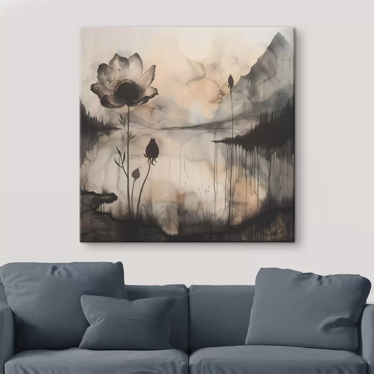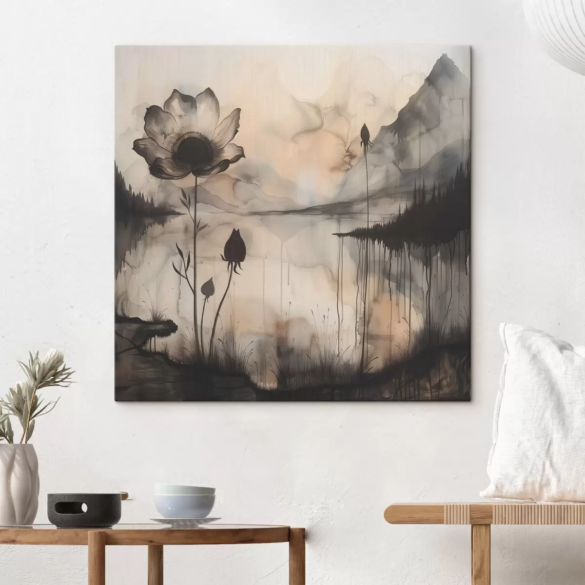 Schilderij Schilderij van een bloem en een meer Art. s38161