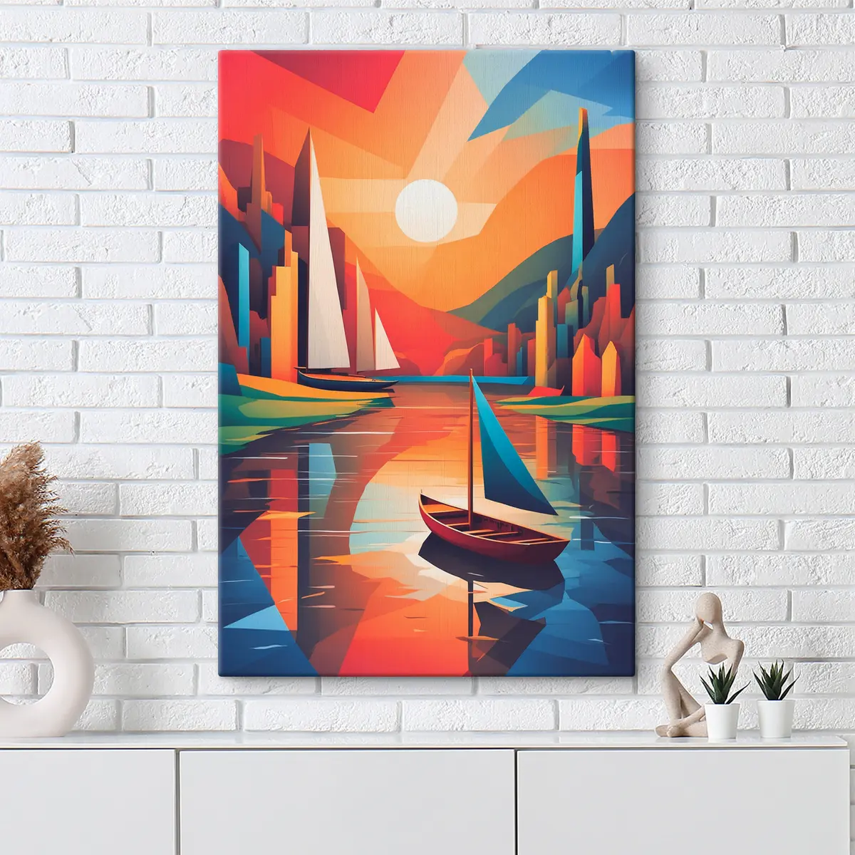 Schilderij Een boot op de rivier. Vectorafbeeldingen Art. s38179