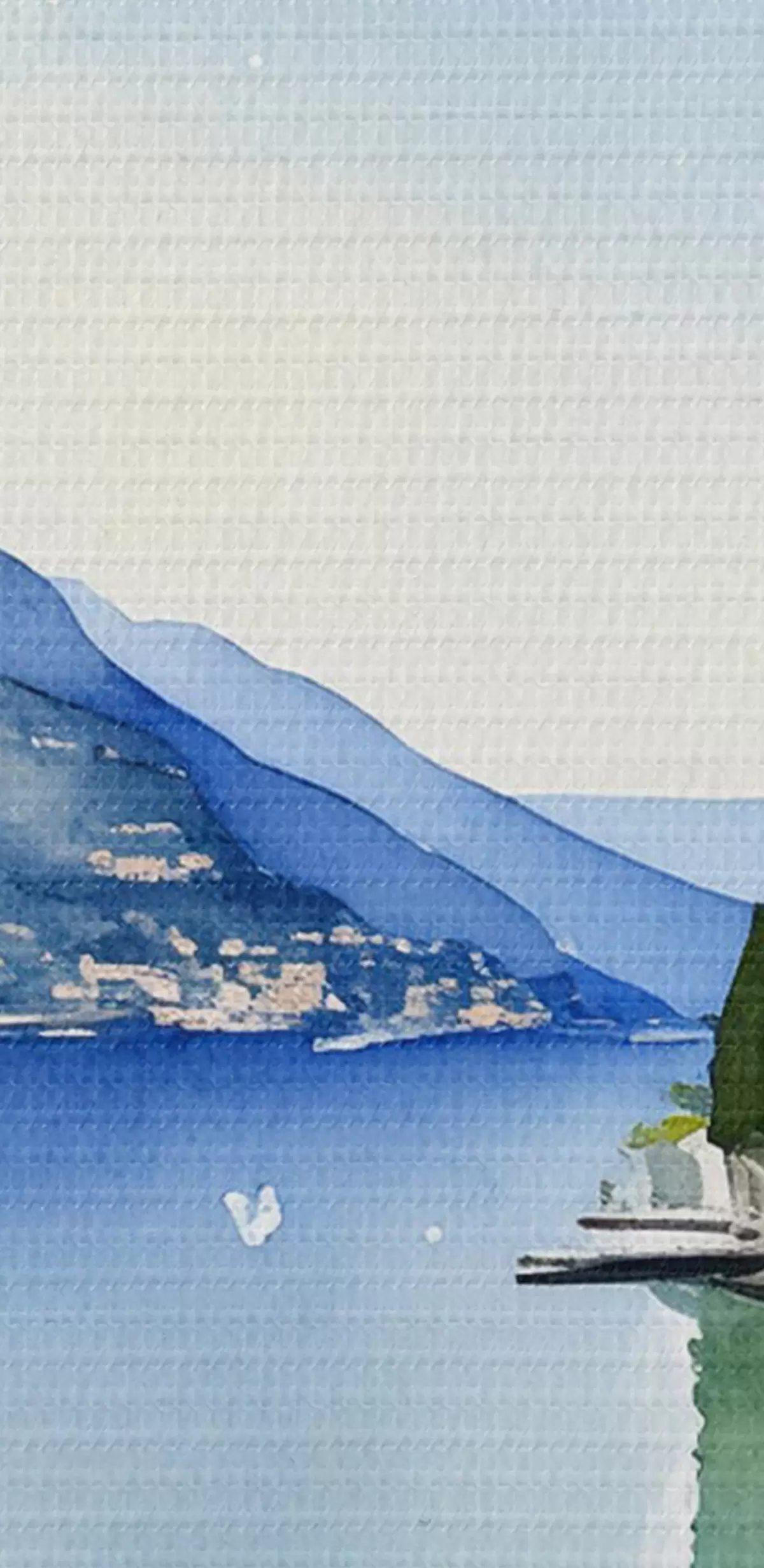 Schilderijen Italiaans meer, zomer, aquarel, natuurlandschap, citroenen, stadsarchitectuur  s38394