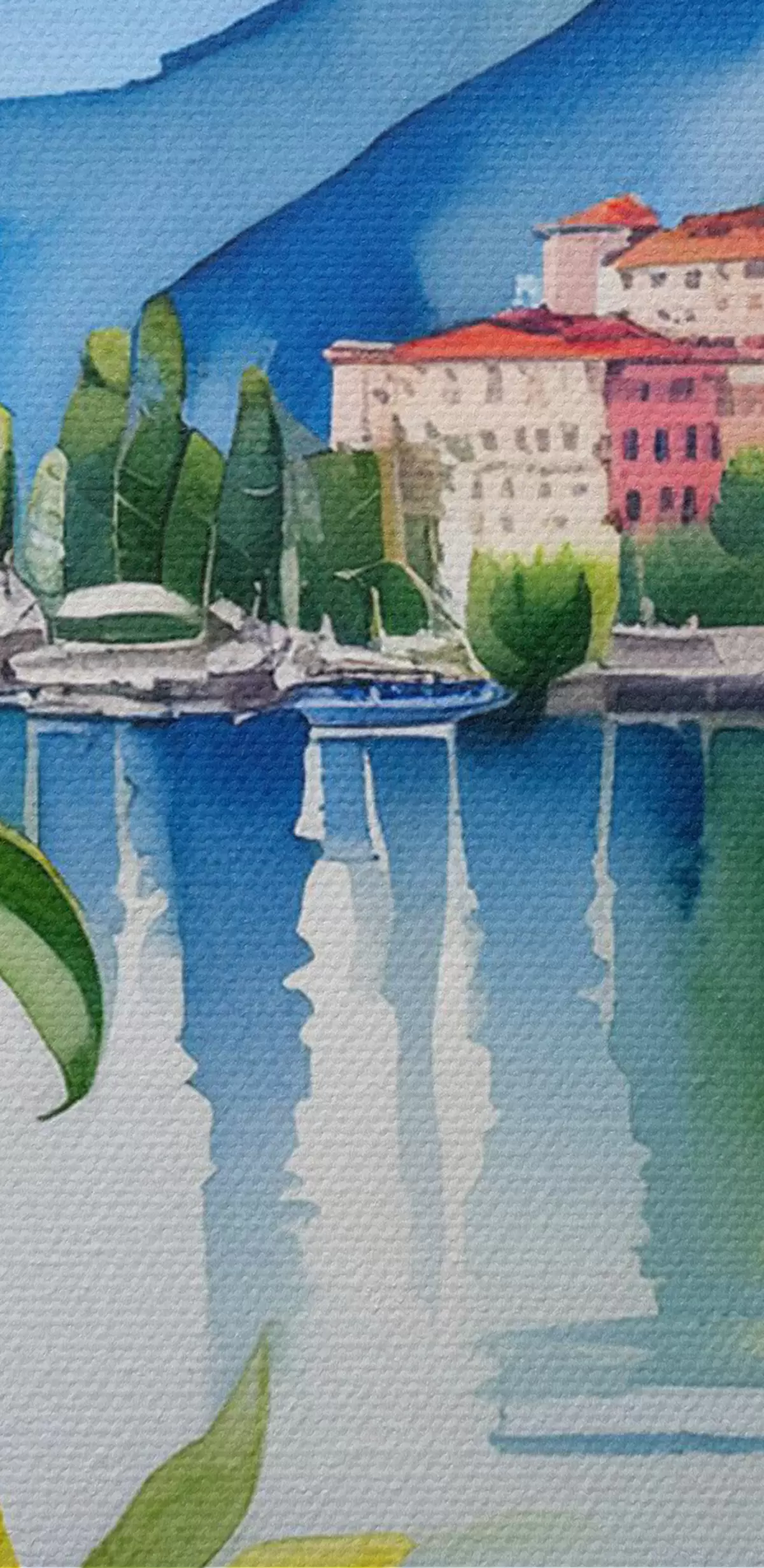 Schilderijen Comomeer, aquarel, Italië, zomer, bergen, citroenboom, zee, oude stad s38398