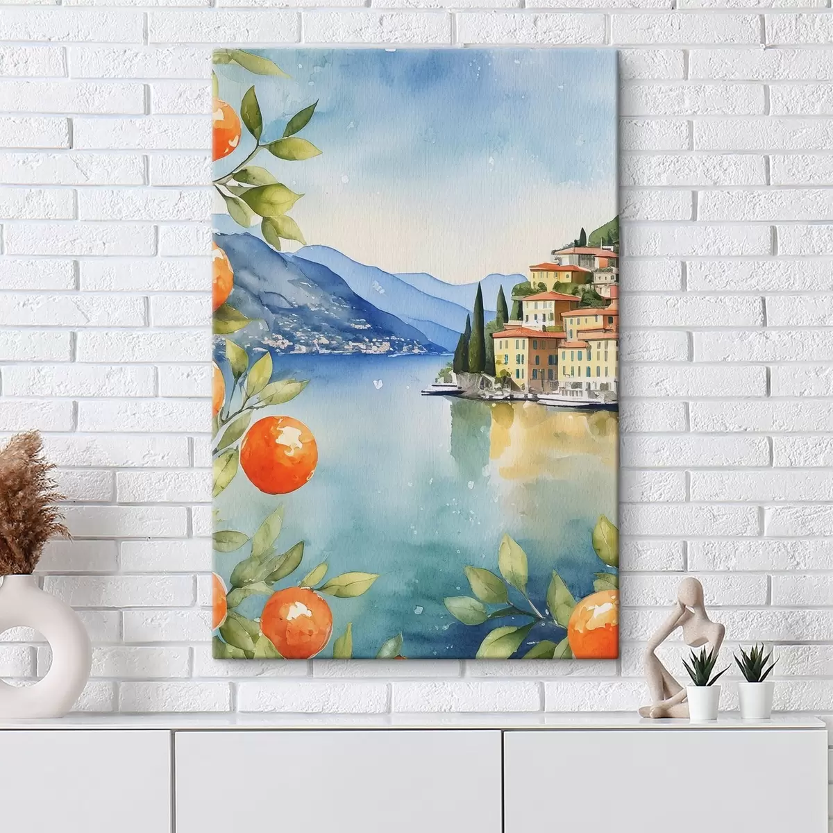 Schilderij Aquarel van een stad aan de rand van het water Art. s38402