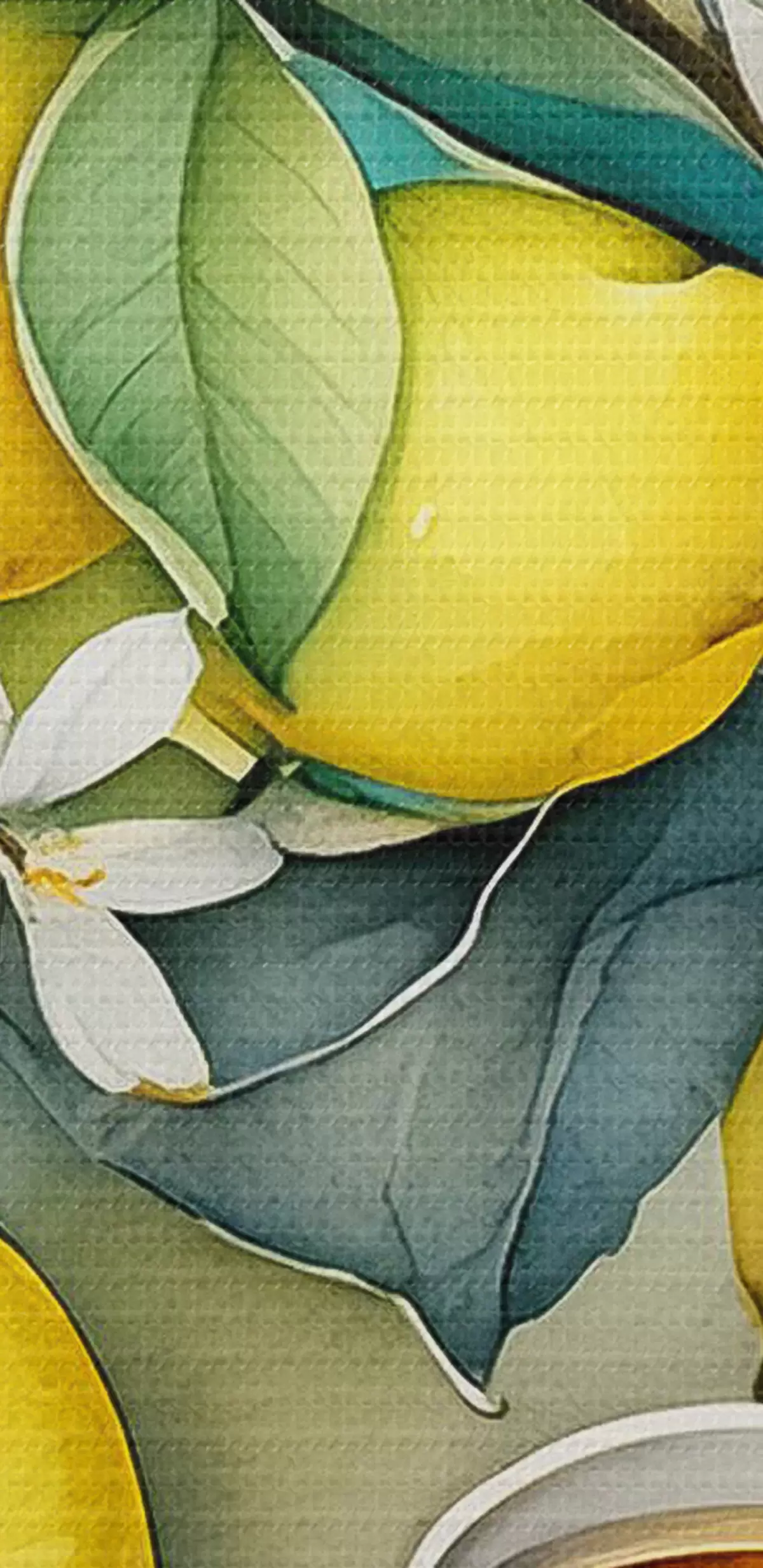 Schilderij Citroenen en bloemen, aquarel, ontbijt, kopje thee, boheemse stijl Art. s38403