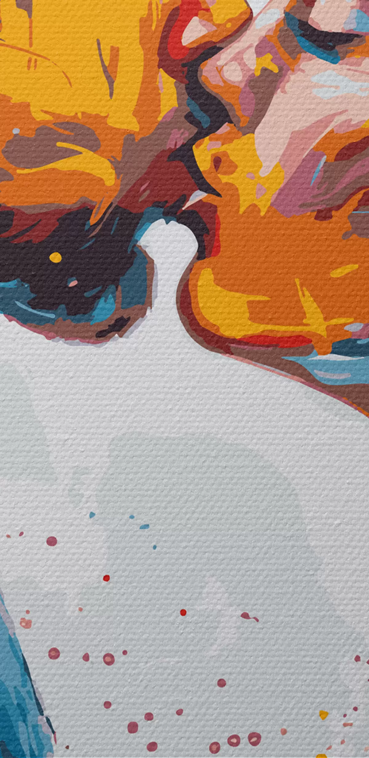 Het schilderij kan direct na ontvangst worden opgehangen. Het schilderij wordt opgespannen op een 2 cm breed houten spieraam.