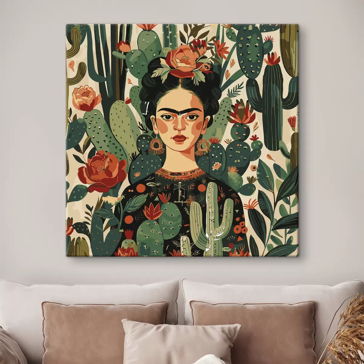 Schilderij Groene stijl Frida in cactussen Art. s38415