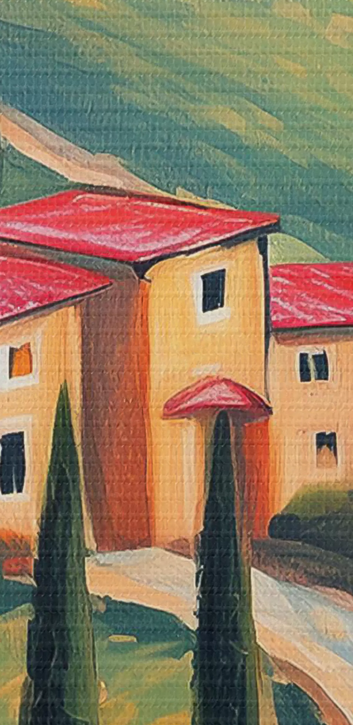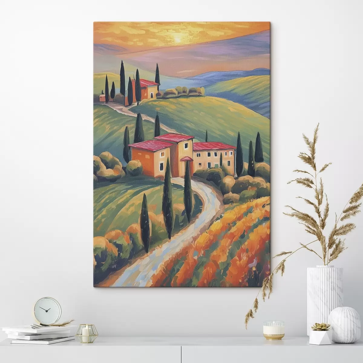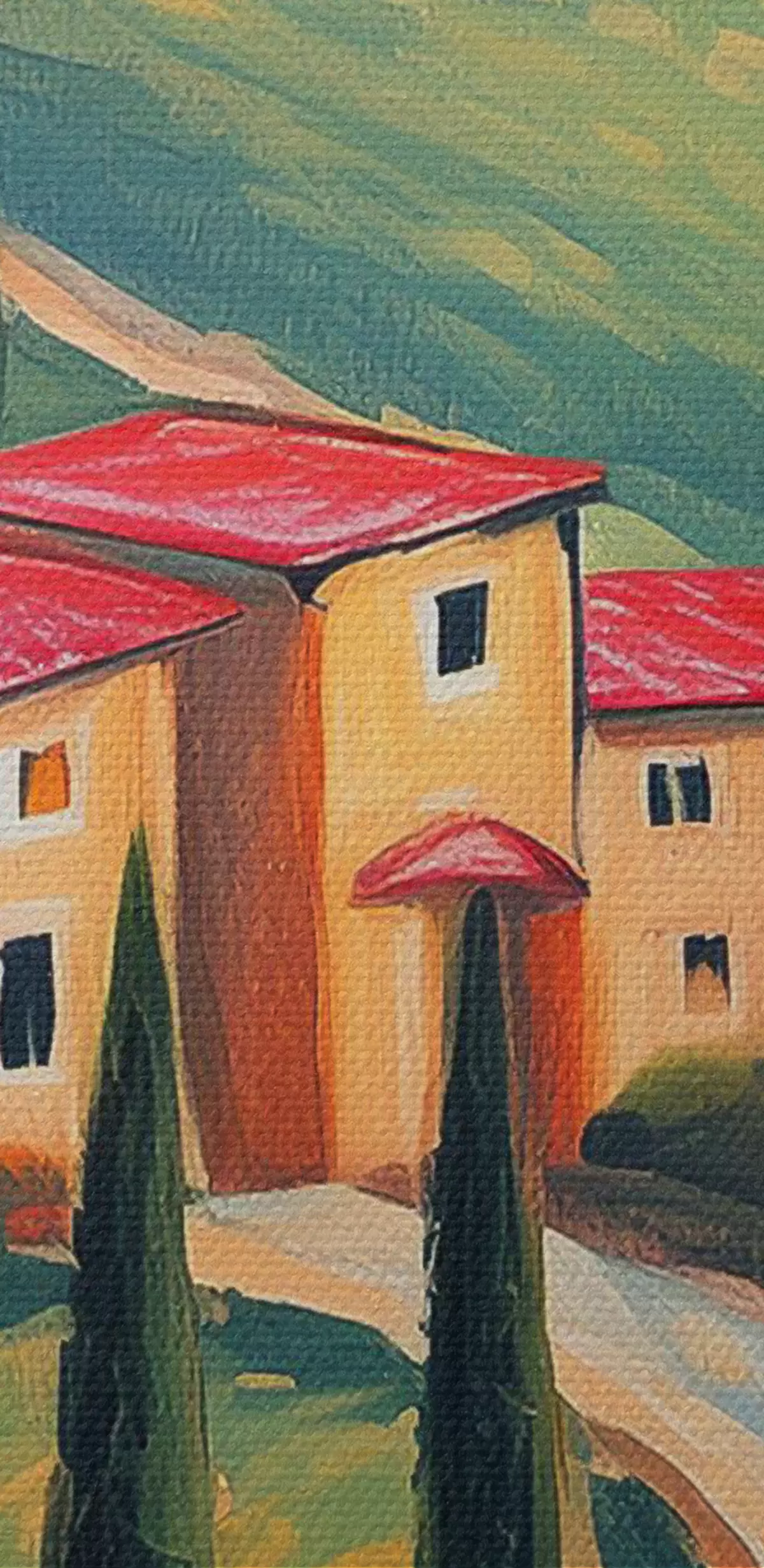 Schilderij Toscaanse landschappen, Italië, acrylkunst, oude huizen, velden, zomer Art. s38488