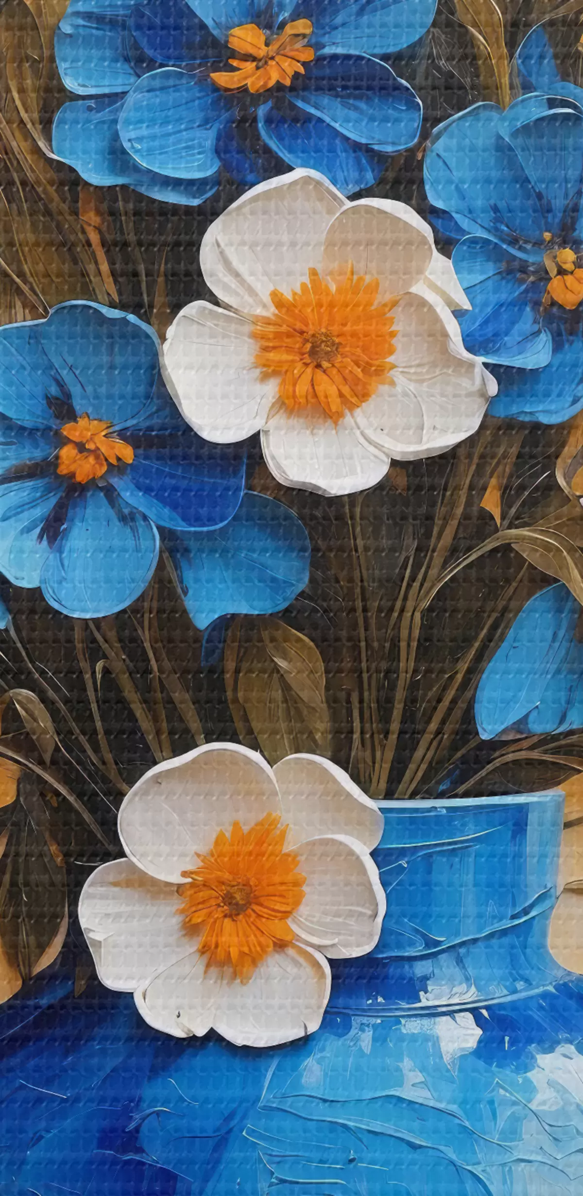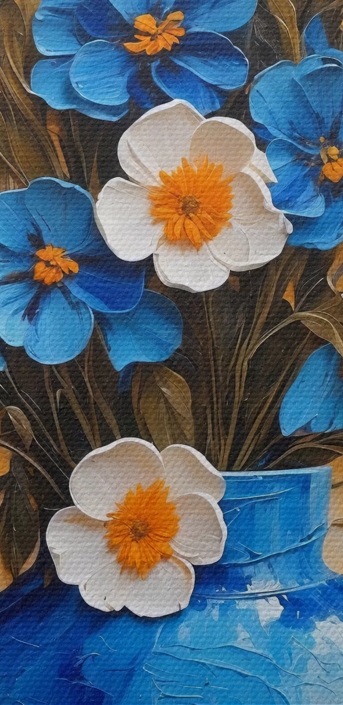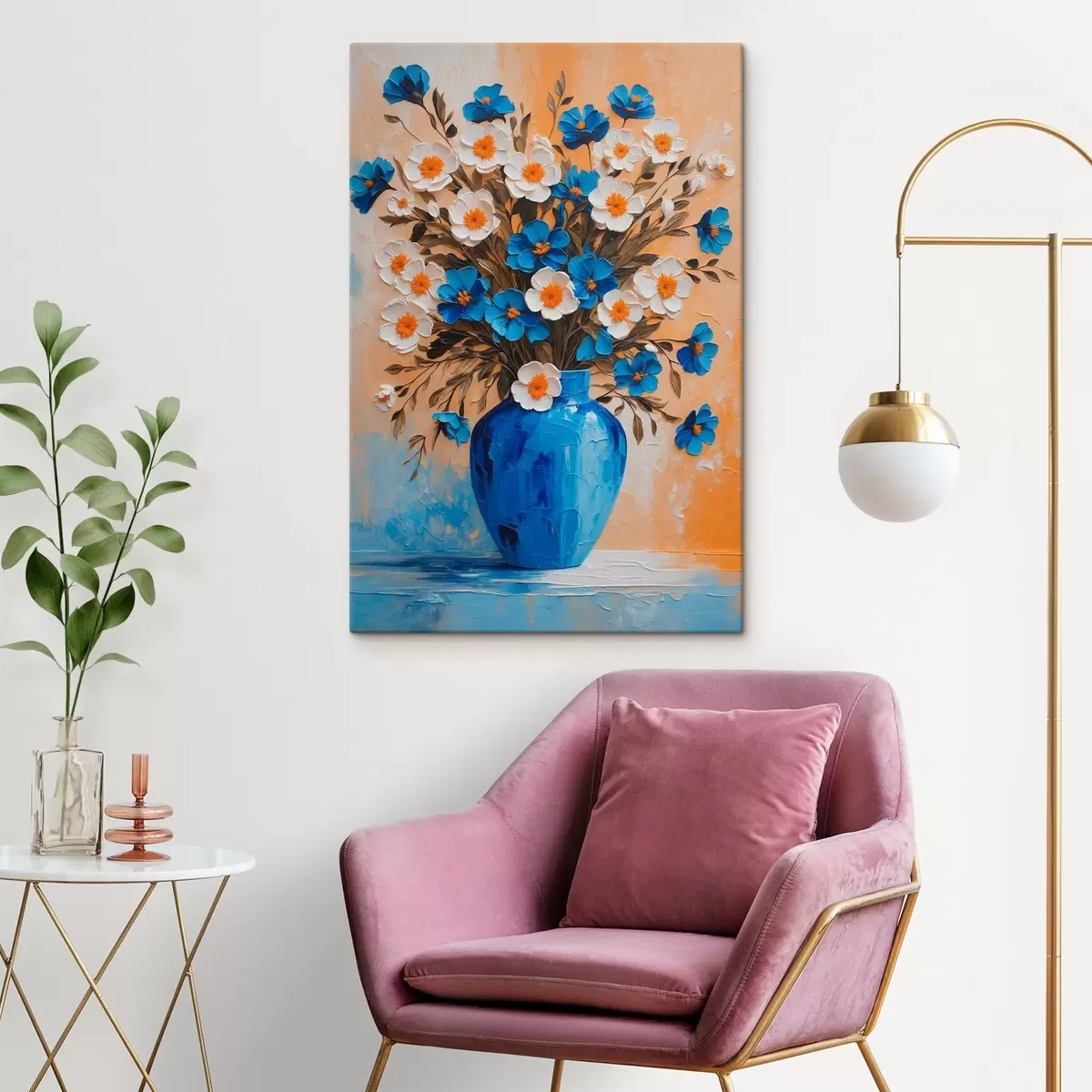 Schilderij Bloemen in een blauwe vaas op abstracte achtergrond Art. s38584