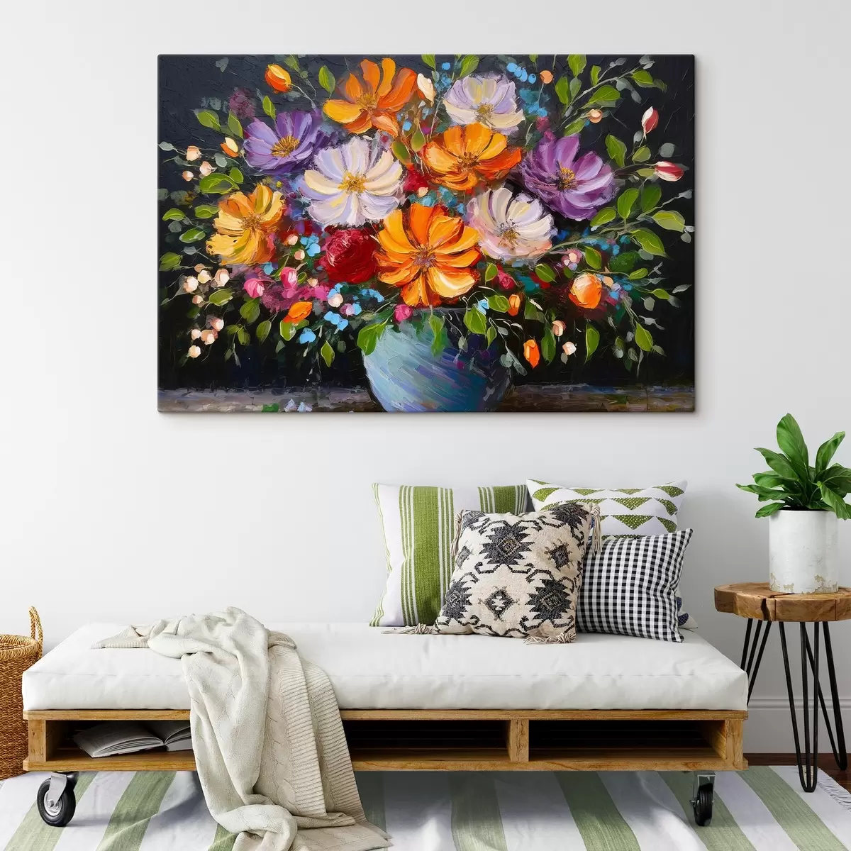 Schilderij Schilderij van bloemen in een blauwe vaas Art. s38658