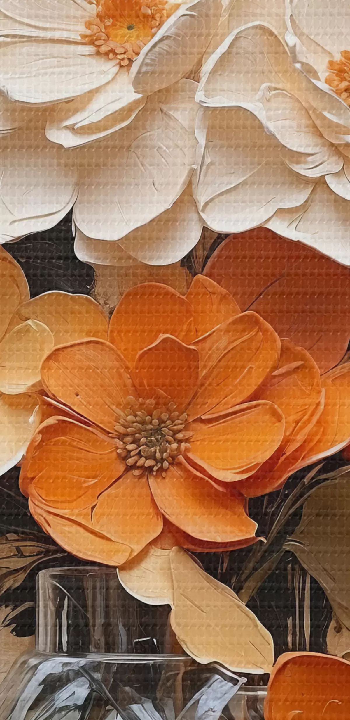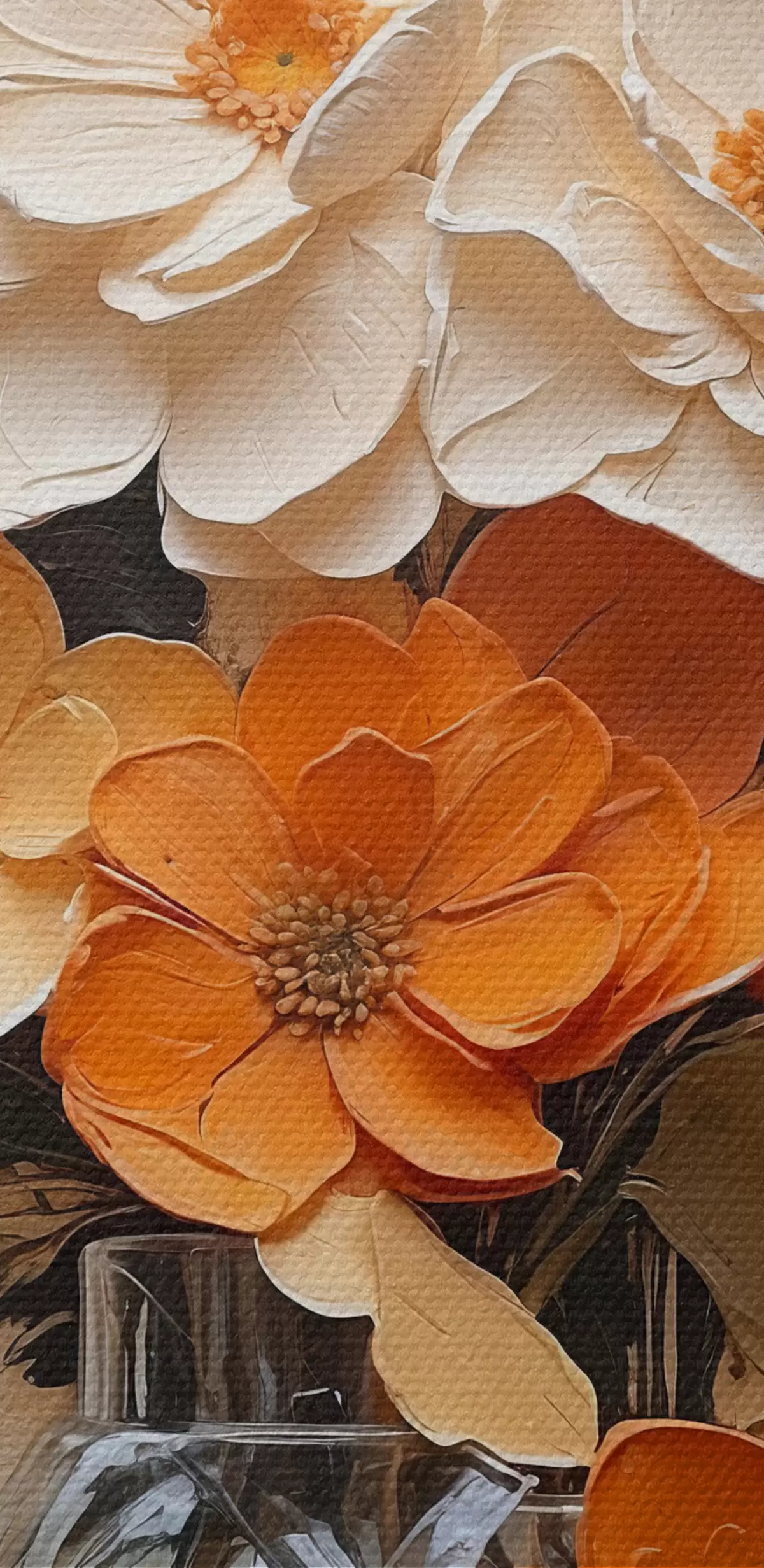 Schilderij Bloemen in vaas in olieverf op beige achtergrond Art. s38673