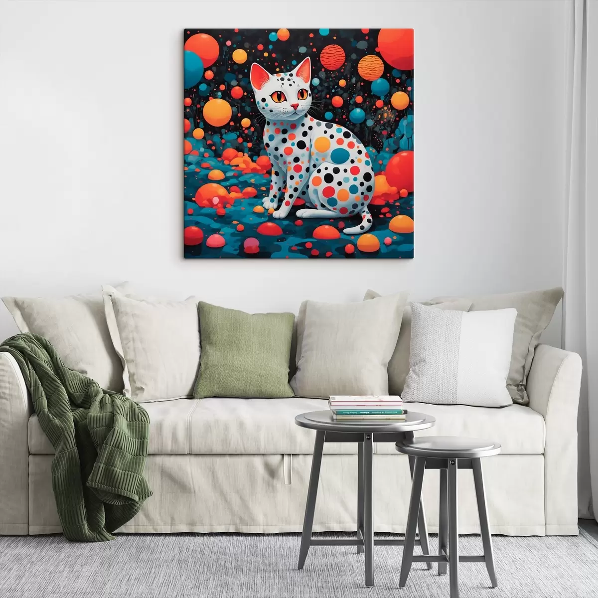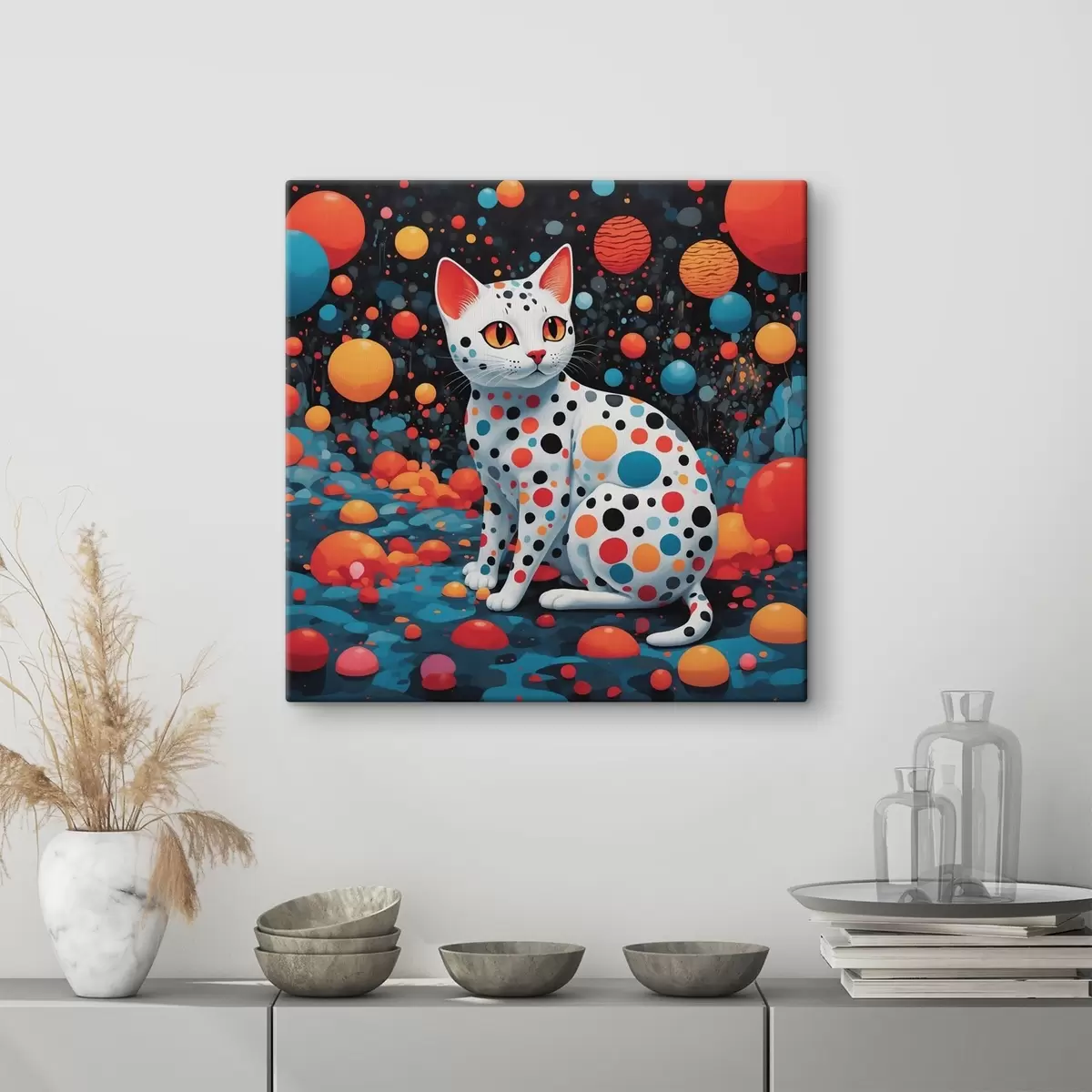 Schilderij Speelse kat in een levendige wereld Art. s38679
