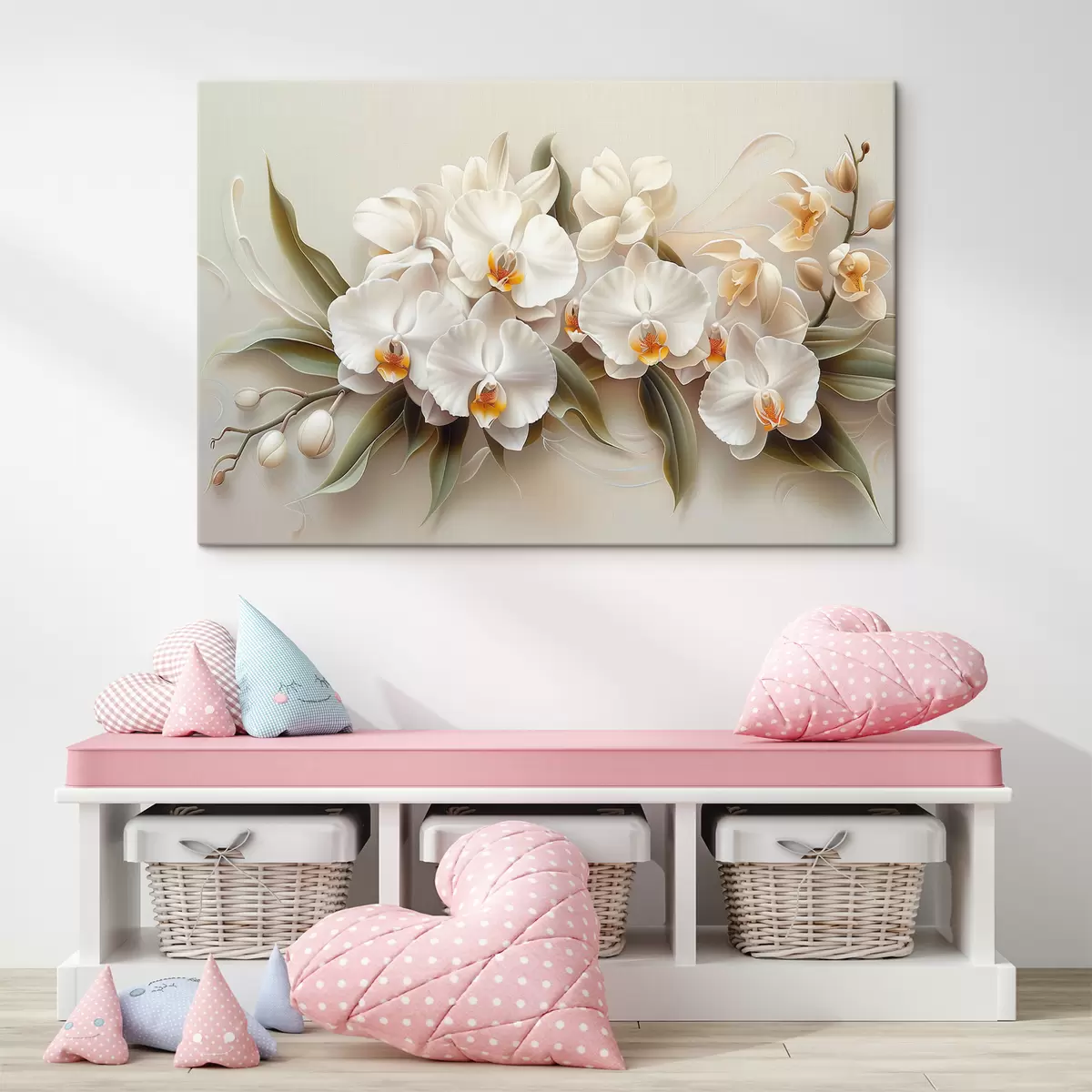 Er zijn drie soorten materiaal te bestellen: Economic Canvas - een dicht en duurzaam materiaal voor digitaal printen, identiek aan schildersdoek, waterdicht oppervlak, realistische weergave van details, materiaal met gemiddelde korrel. Premium Canvas - de textuur lijkt op die van schildersdoek (verweven kleine draden). Zachte, gedetailleerde reproductie van de afbeelding op een mat oppervlak. Eco-Premium - hoogwaardige 100% katoenen stof. Dankzij de natuurlijke katoenvezels is het materiaal duurzaam en slijtvast. Uitstekende kleurweergave en detail.