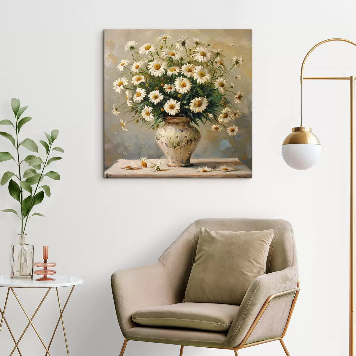 Er zijn drie soorten materiaal te bestellen: Economic Canvas - een dicht en duurzaam materiaal voor digitaal printen, identiek aan schildersdoek, waterdicht oppervlak, realistische weergave van details, materiaal met gemiddelde korrel. Premium Canvas - de textuur lijkt op die van schildersdoek (verweven kleine draden). Zachte, gedetailleerde reproductie van de afbeelding op een mat oppervlak. Eco-Premium - hoogwaardige 100% katoenen stof. Dankzij de natuurlijke katoenvezels is het materiaal duurzaam en slijtvast. Uitstekende kleurweergave en detail.