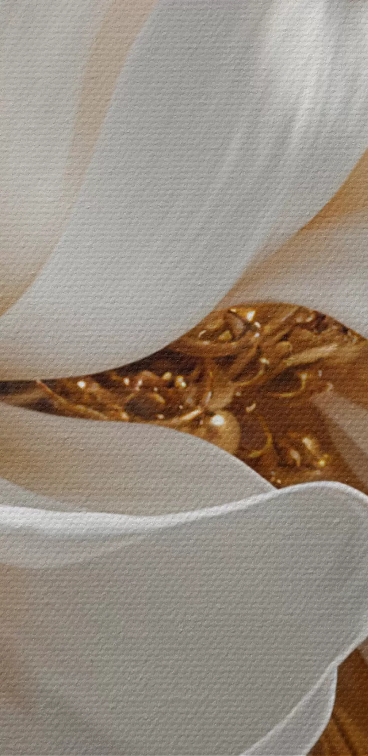 Schilderij Een close-up van een grote witte bloem met delicate bloemblaadjes en meeldraden in het centrum, minimalisme Art. s38762