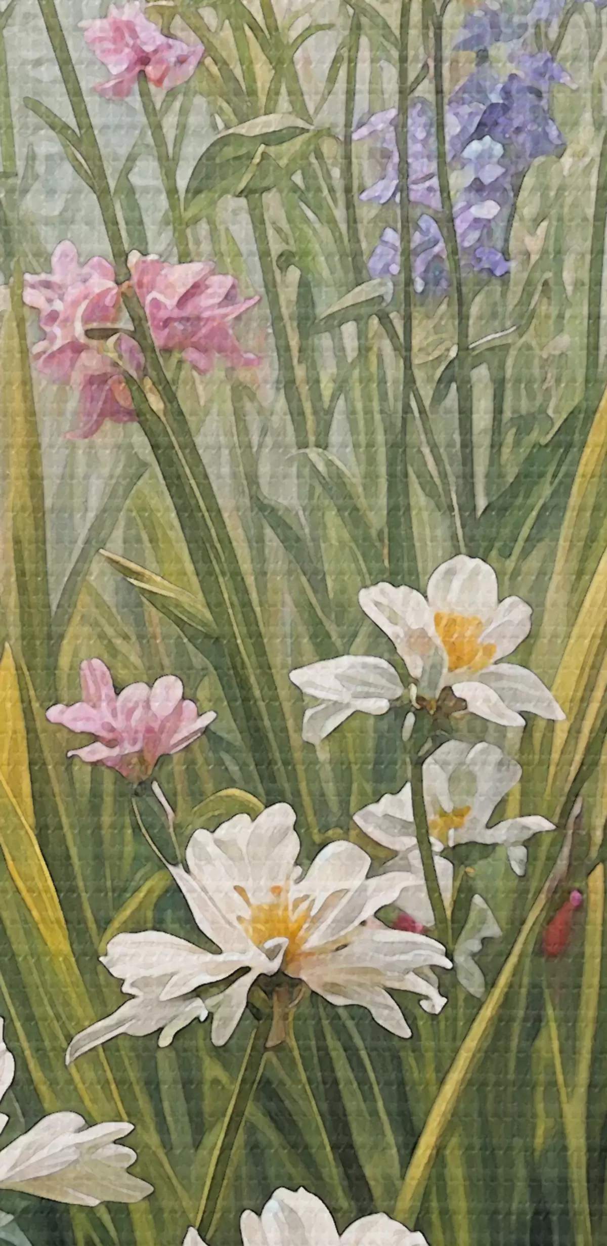 Schilderijen Wilde bloemen en hoog gras. De algehele scène toont een levendig, natuurlijk landschap s38829