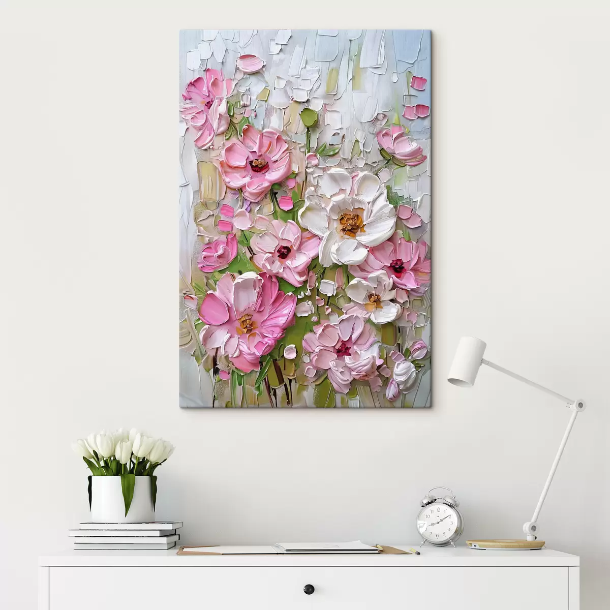 Er zijn drie soorten materiaal te bestellen: Economic Canvas - een dicht en duurzaam materiaal voor digitaal printen, identiek aan schildersdoek, waterdicht oppervlak, realistische weergave van details, materiaal met gemiddelde korrel. Premium Canvas - de textuur lijkt op die van schildersdoek (verweven kleine draden). Zachte, gedetailleerde reproductie van de afbeelding op een mat oppervlak. Eco-Premium - hoogwaardige 100% katoenen stof. Dankzij de natuurlijke katoenvezels is het materiaal duurzaam en slijtvast. Uitstekende kleurweergave en detail.
