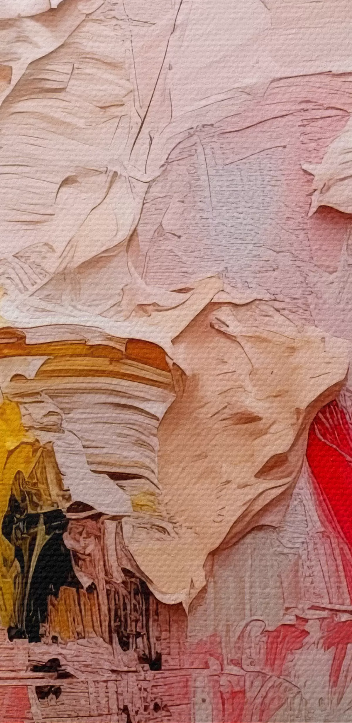 Schilderij Abstract expressionisme van grote verfstreken in roze, geel en wit Art. s38916