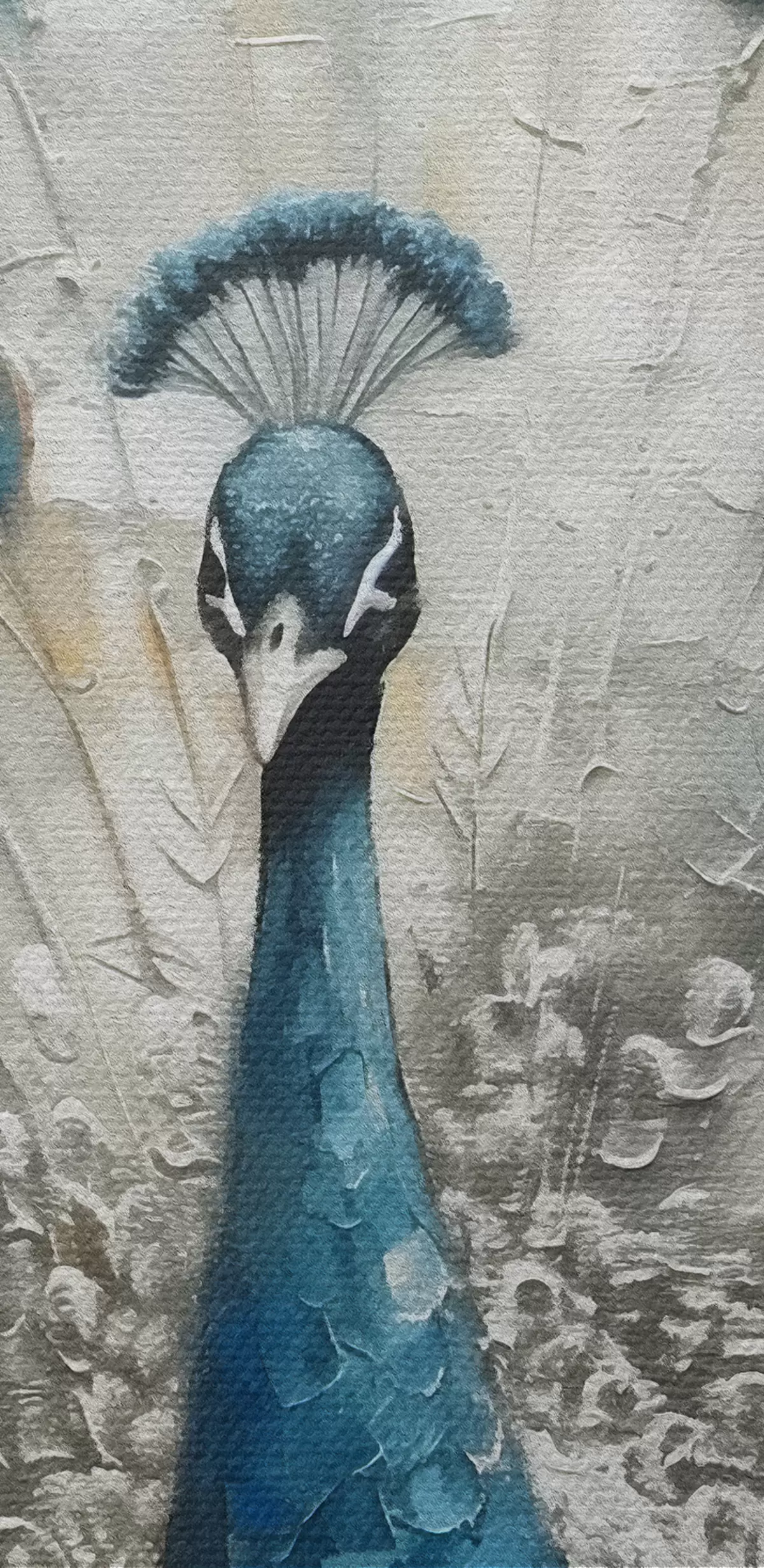 Schilderij Blauwe pauwvogel met veren gedrukte textuur Art. s38931