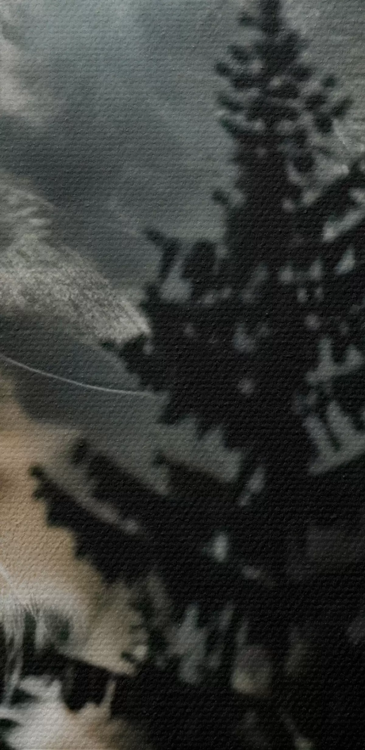 De fijne weving van draden op dit doek lijkt op het oppervlak van professionele schildersdoeken.