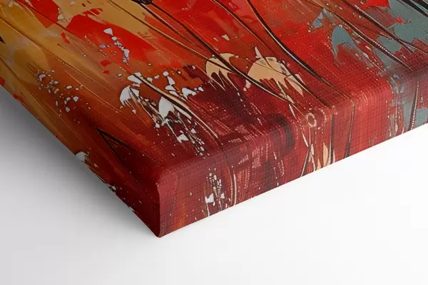 Het schilderij kan direct na ontvangst worden opgehangen. Het schilderij wordt opgespannen op een 2 cm breed houten spieraam.