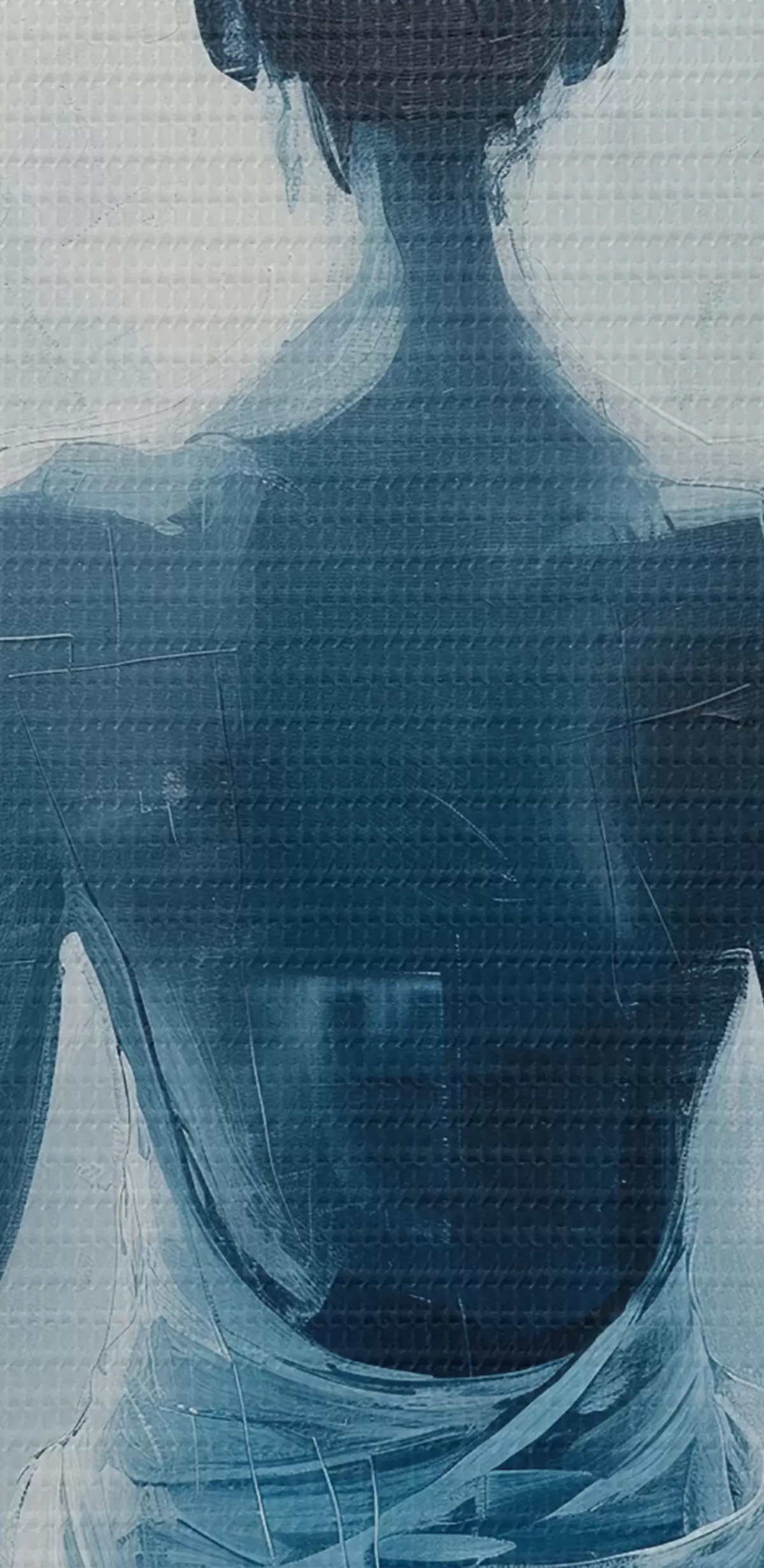 De fijne weving van draden op dit doek lijkt op het oppervlak van professionele schildersdoeken.