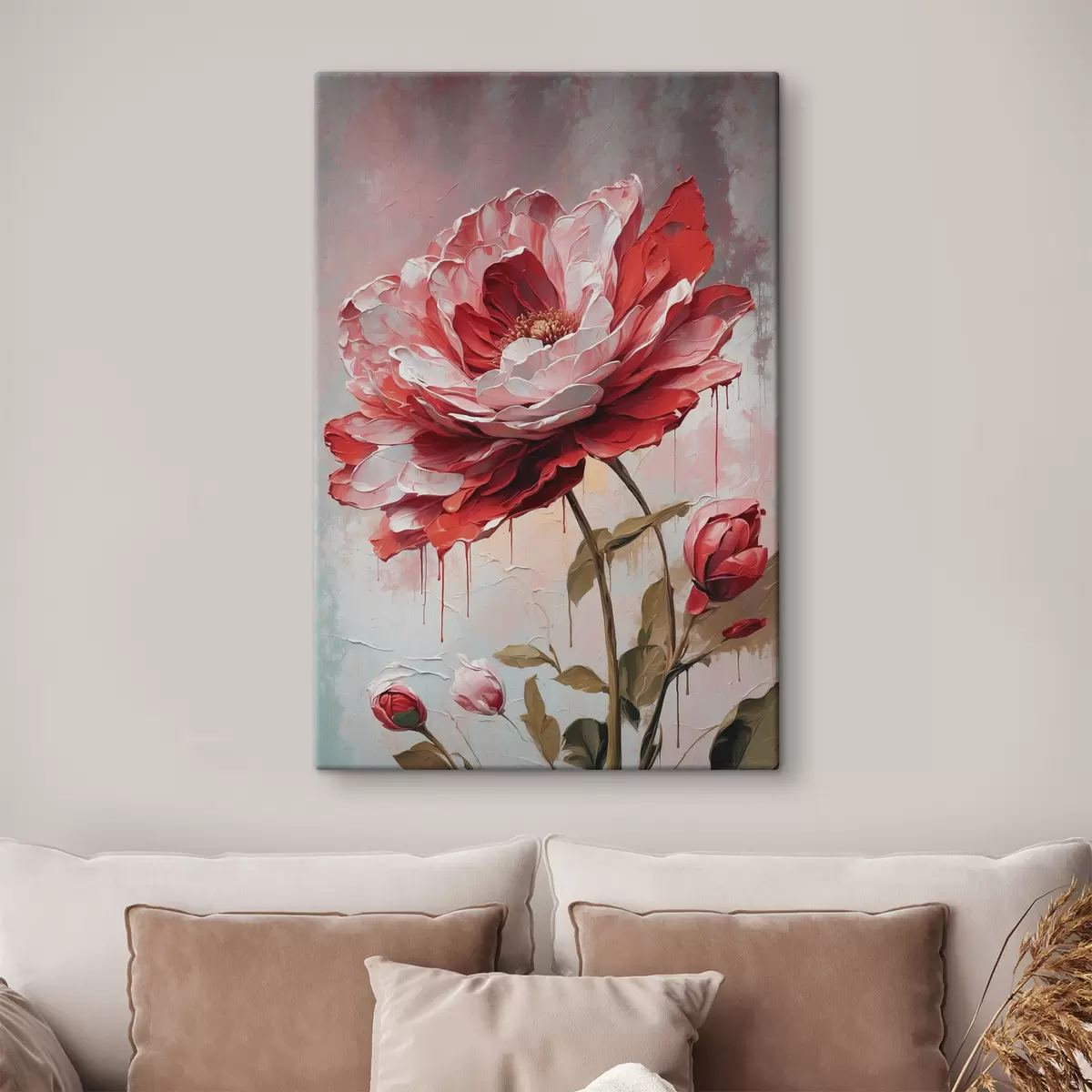 Schilderij Rode bloem op wit-grijze achtergrond Art. s39173