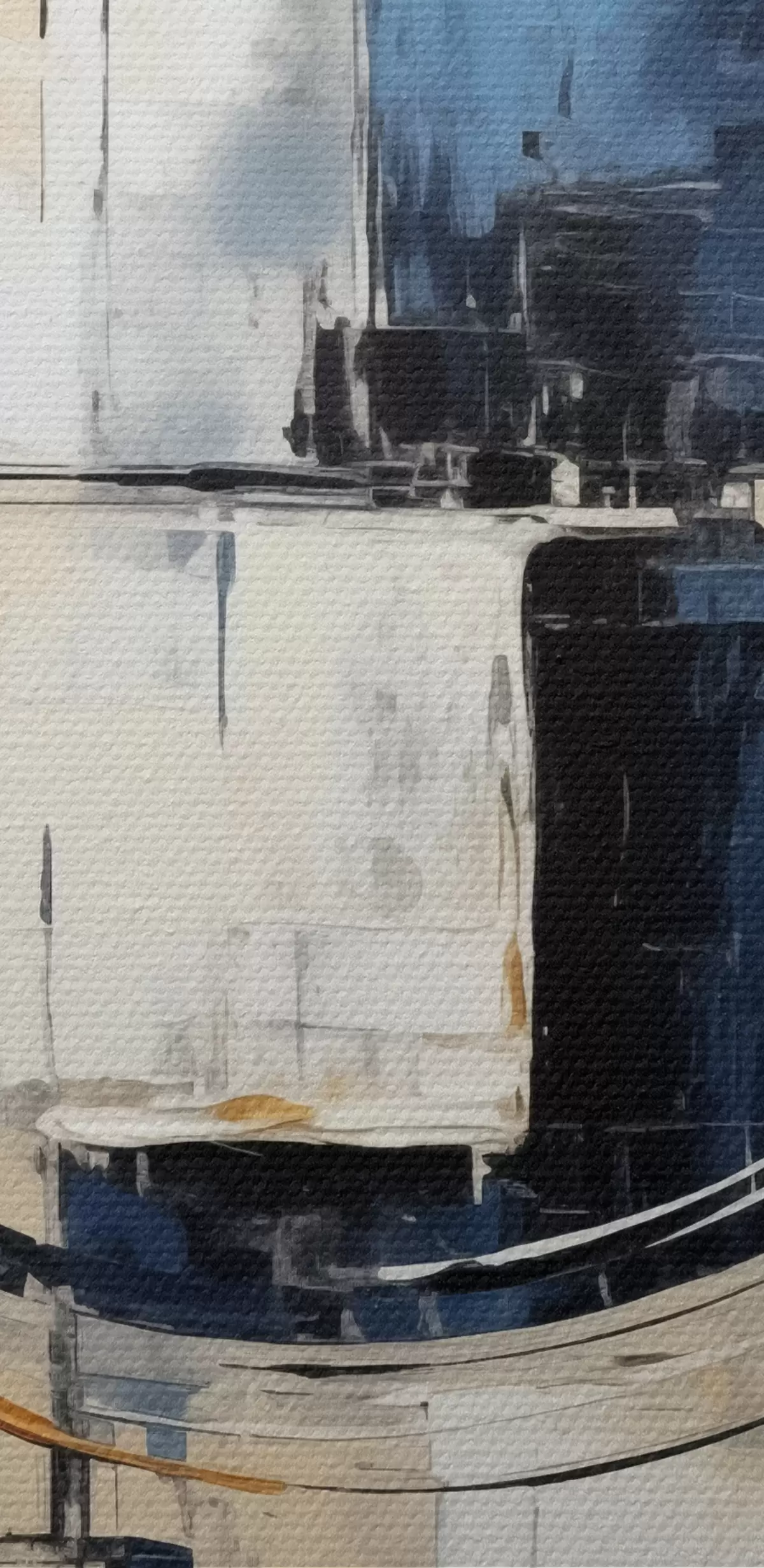 Schilderij Abstract kubisme, blauwe, oranje, witte lijnen, cirkelvormige figuur Art. s39179