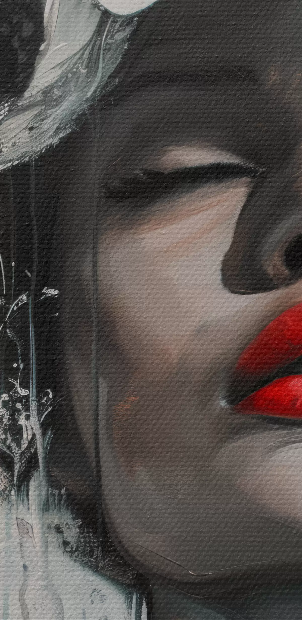 Schilderij Portret van een vrouw met bloemen in haar haar en rode lippen Art. s39253