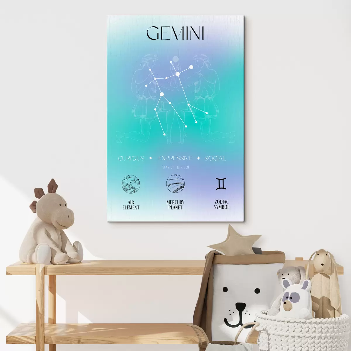 Schilderij Tweelingen sterrenbeeld, sterrenbeelden, kosmisch, planeten, astrologie, blauwe en paarse kleuren Art. s39279