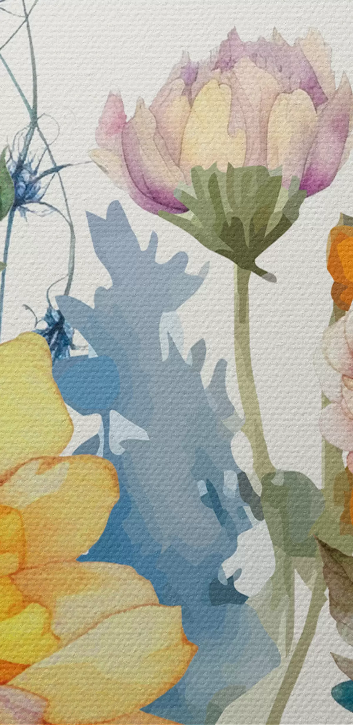 Er zijn drie soorten materiaal te bestellen: Economic Canvas - een dicht en duurzaam materiaal voor digitaal printen, identiek aan schildersdoek, waterdicht oppervlak, realistische weergave van details, materiaal met gemiddelde korrel. Premium Canvas - de textuur lijkt op die van schildersdoek (verweven kleine draden). Zachte, gedetailleerde reproductie van de afbeelding op een mat oppervlak. Eco-Premium - hoogwaardige 100% katoenen stof. Dankzij de natuurlijke katoenvezels is het materiaal duurzaam en slijtvast. Uitstekende kleurweergave en detail.
