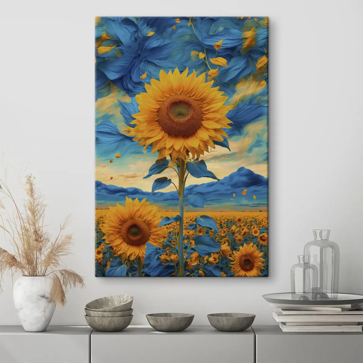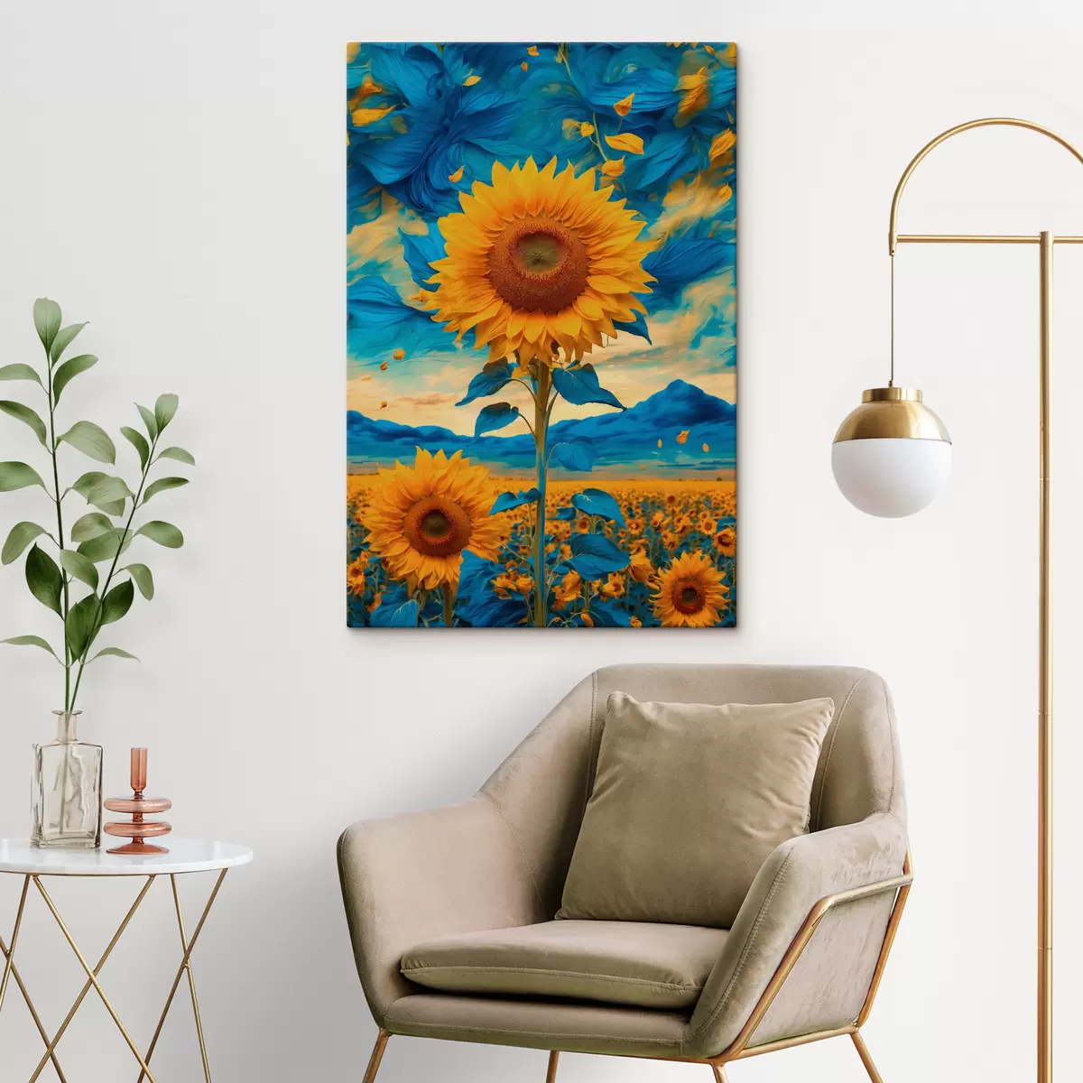 Schilderij Veld met zonnebloemen over abstracte hemel Art. s39367