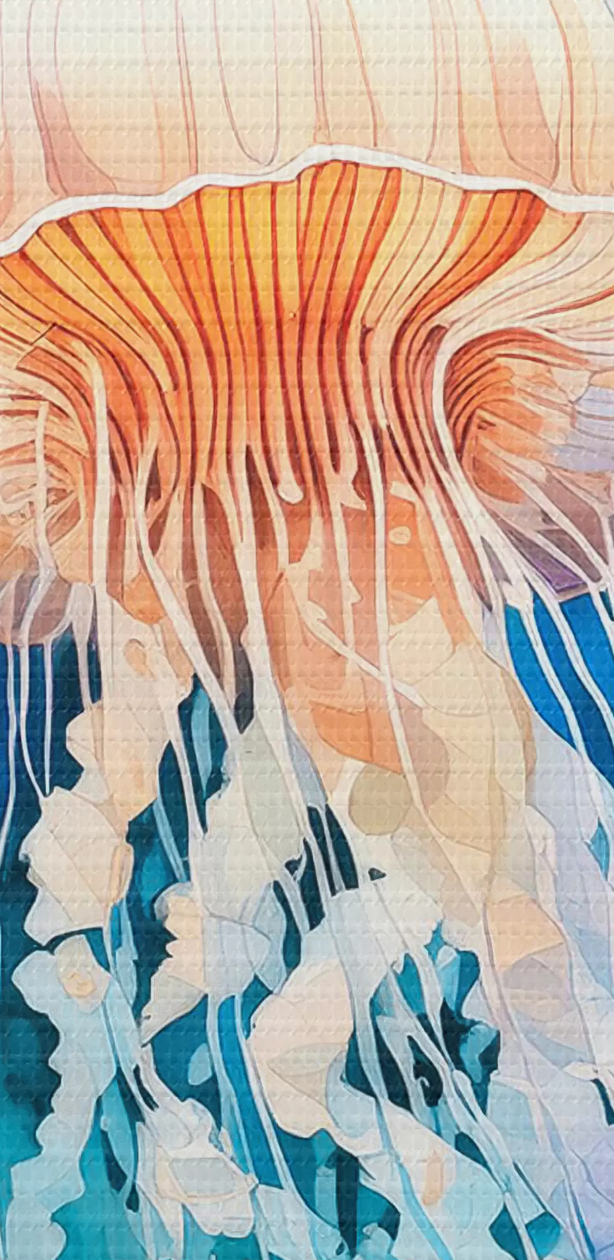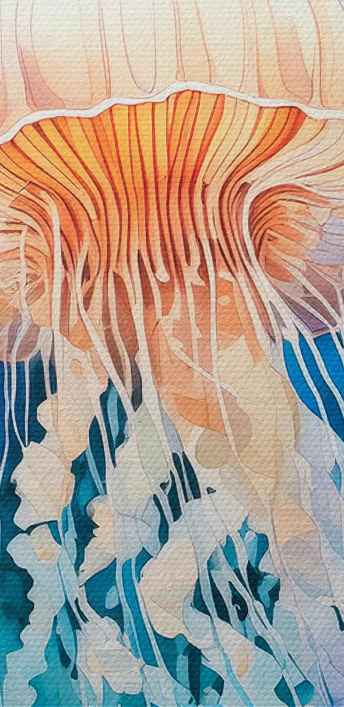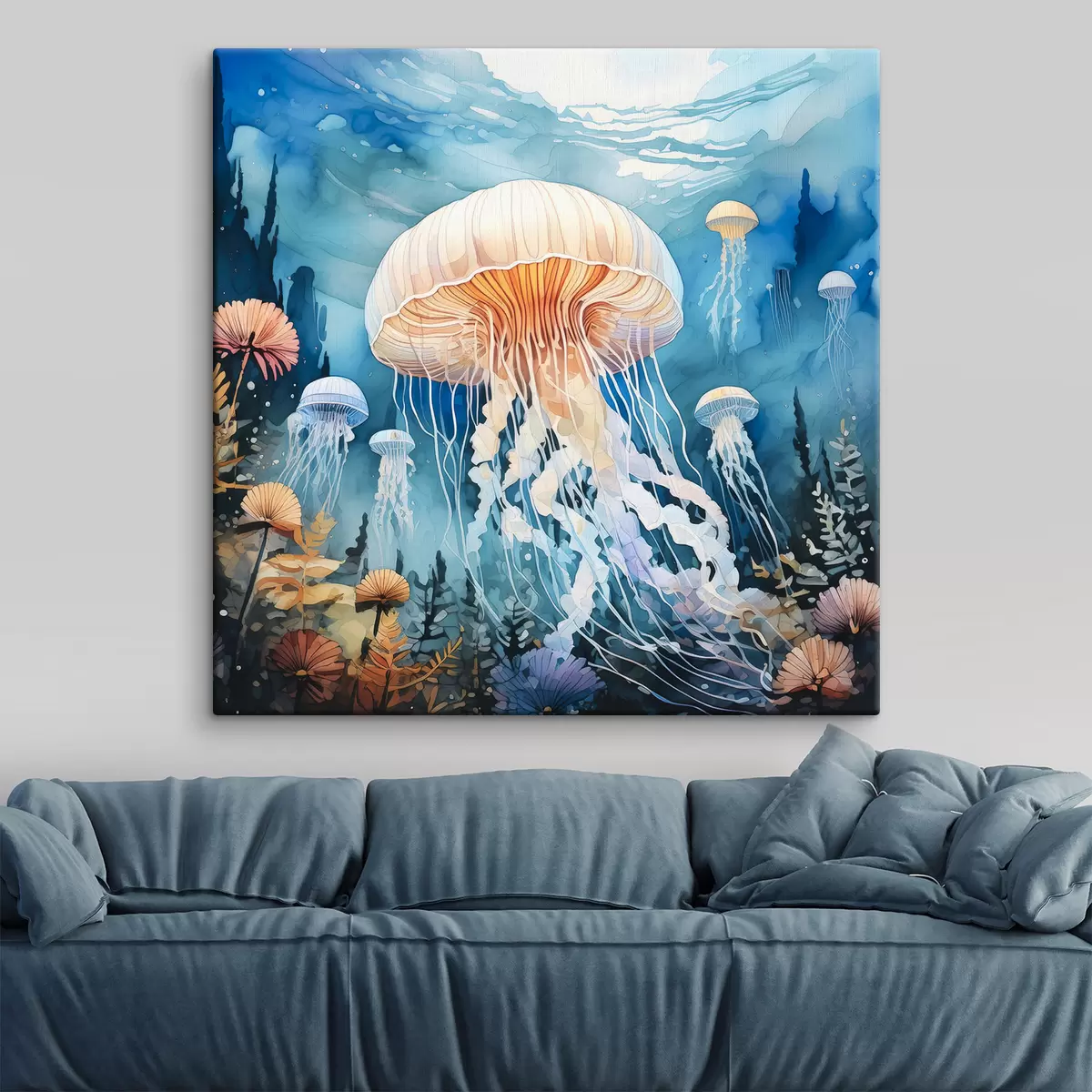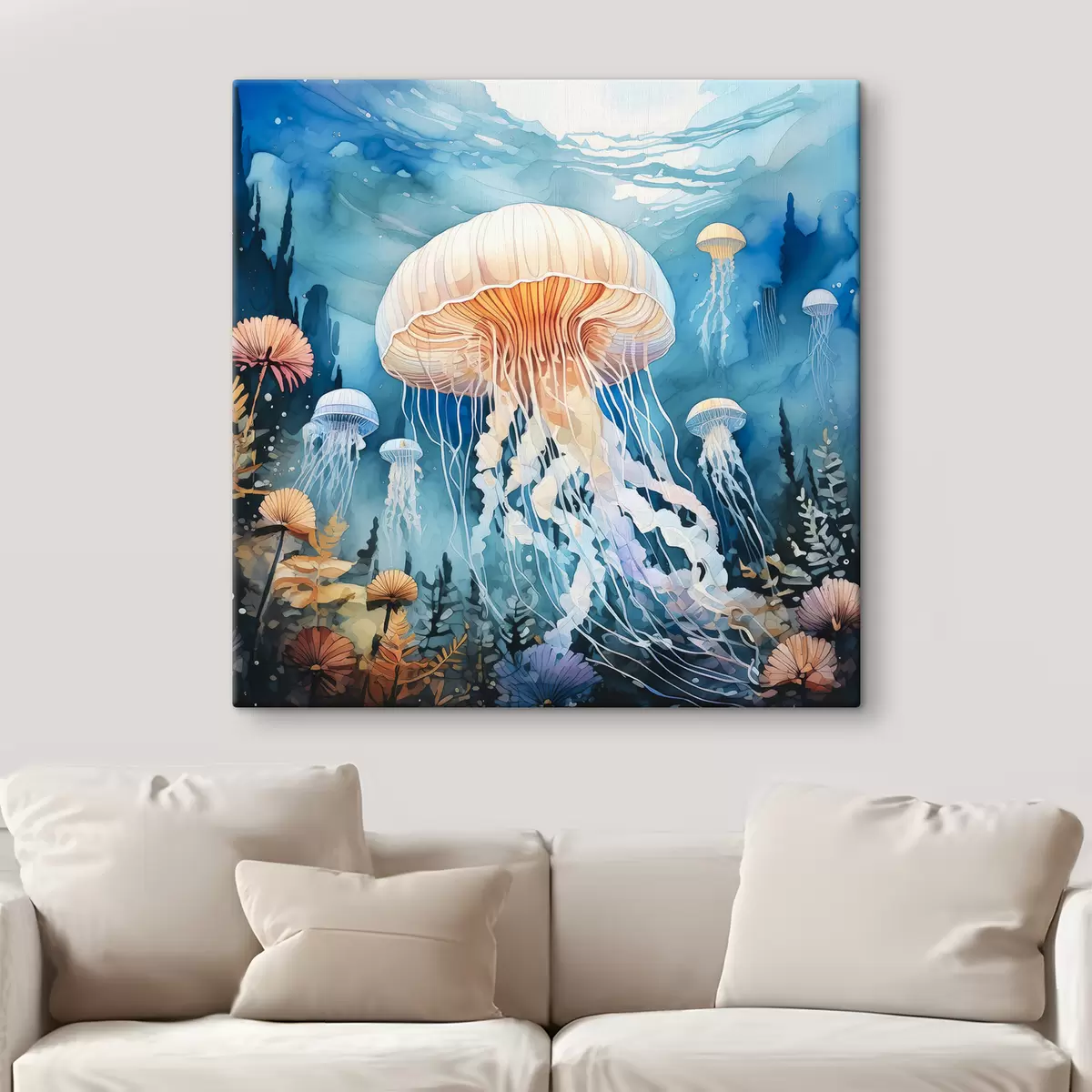 Schilderij Onderwater zeeleven, kwallen, aquarel, koraalriffen, aquamarijnkleuren Art. s39428