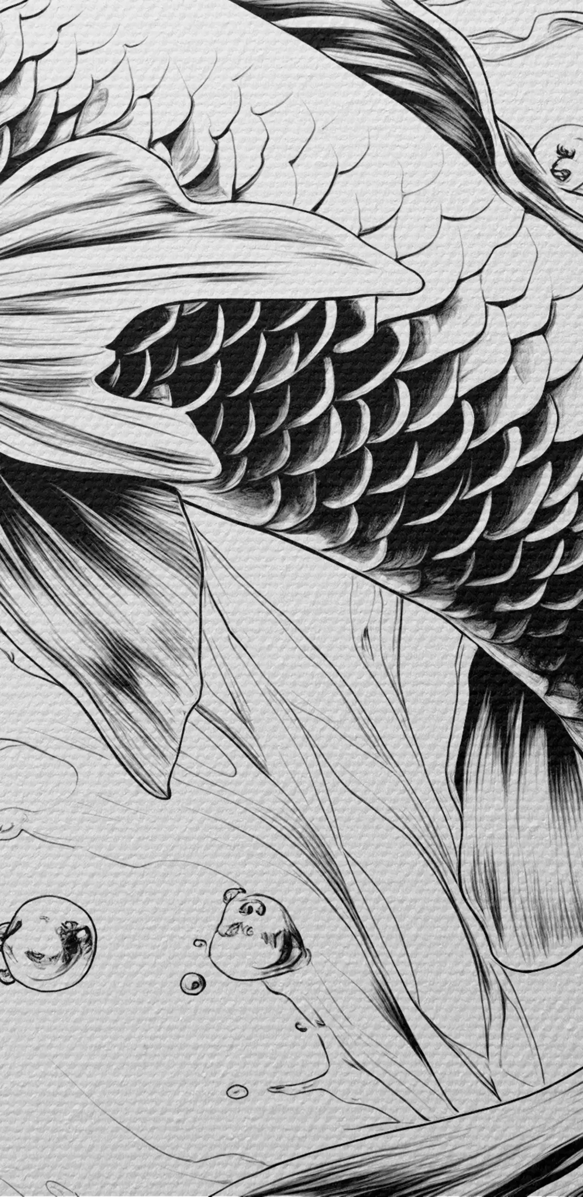 Schilderij Koi vissen monochrome lijntekening Art. s39433