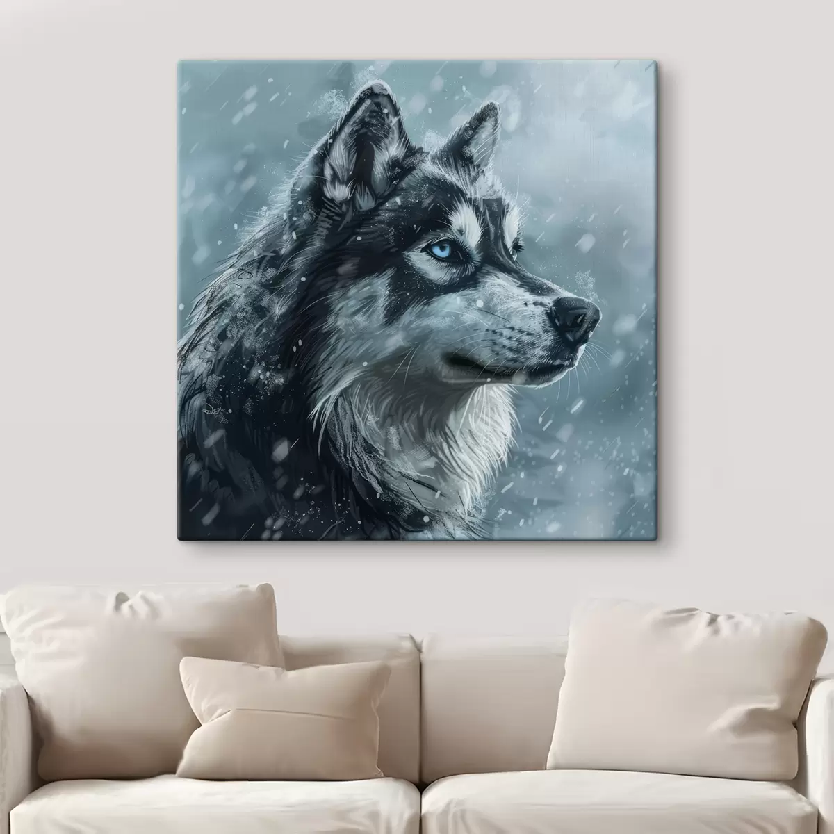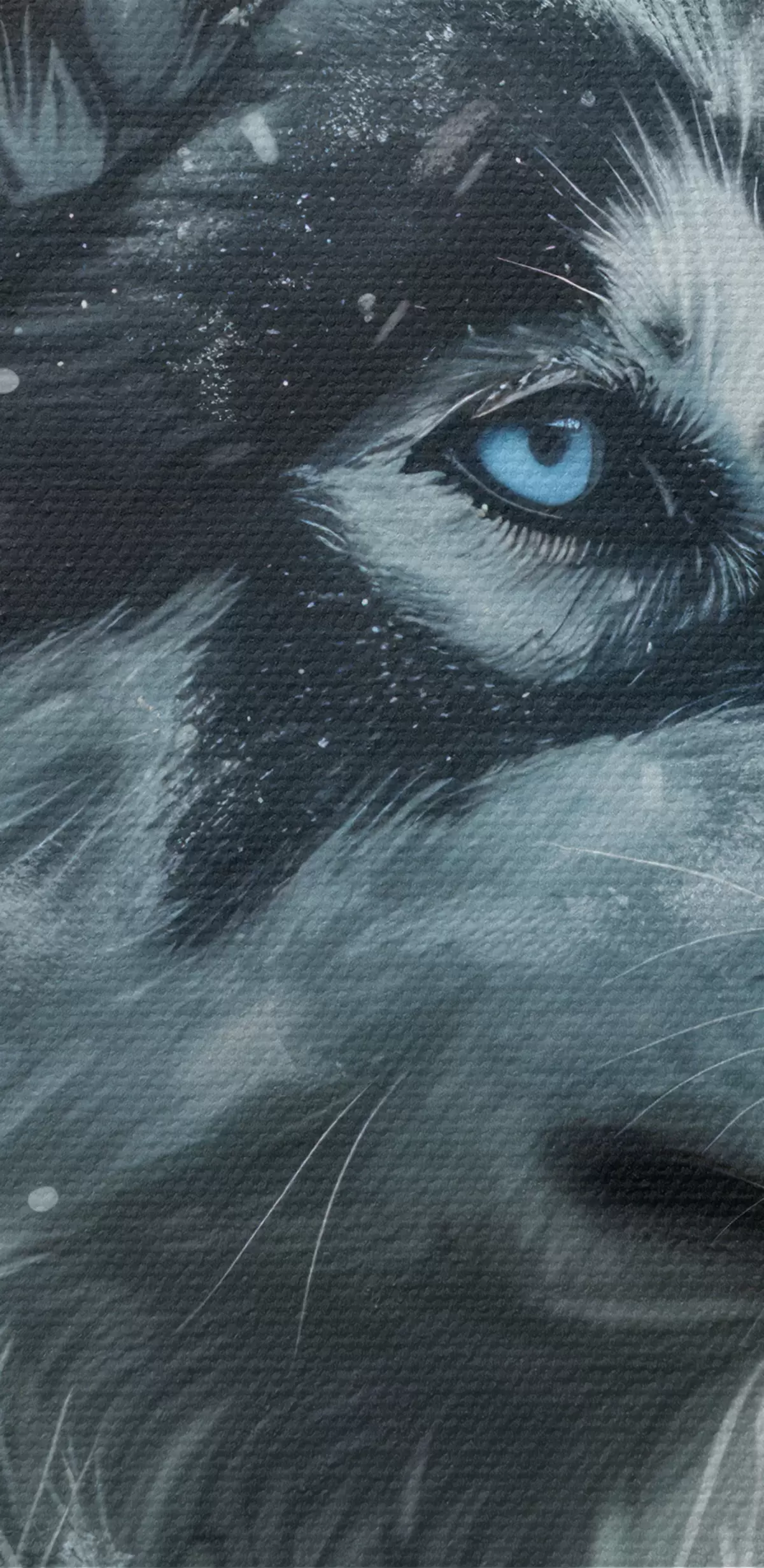 Schilderij Husky met blauwe ogen tegen winterblauwe achtergrond Art. s39462