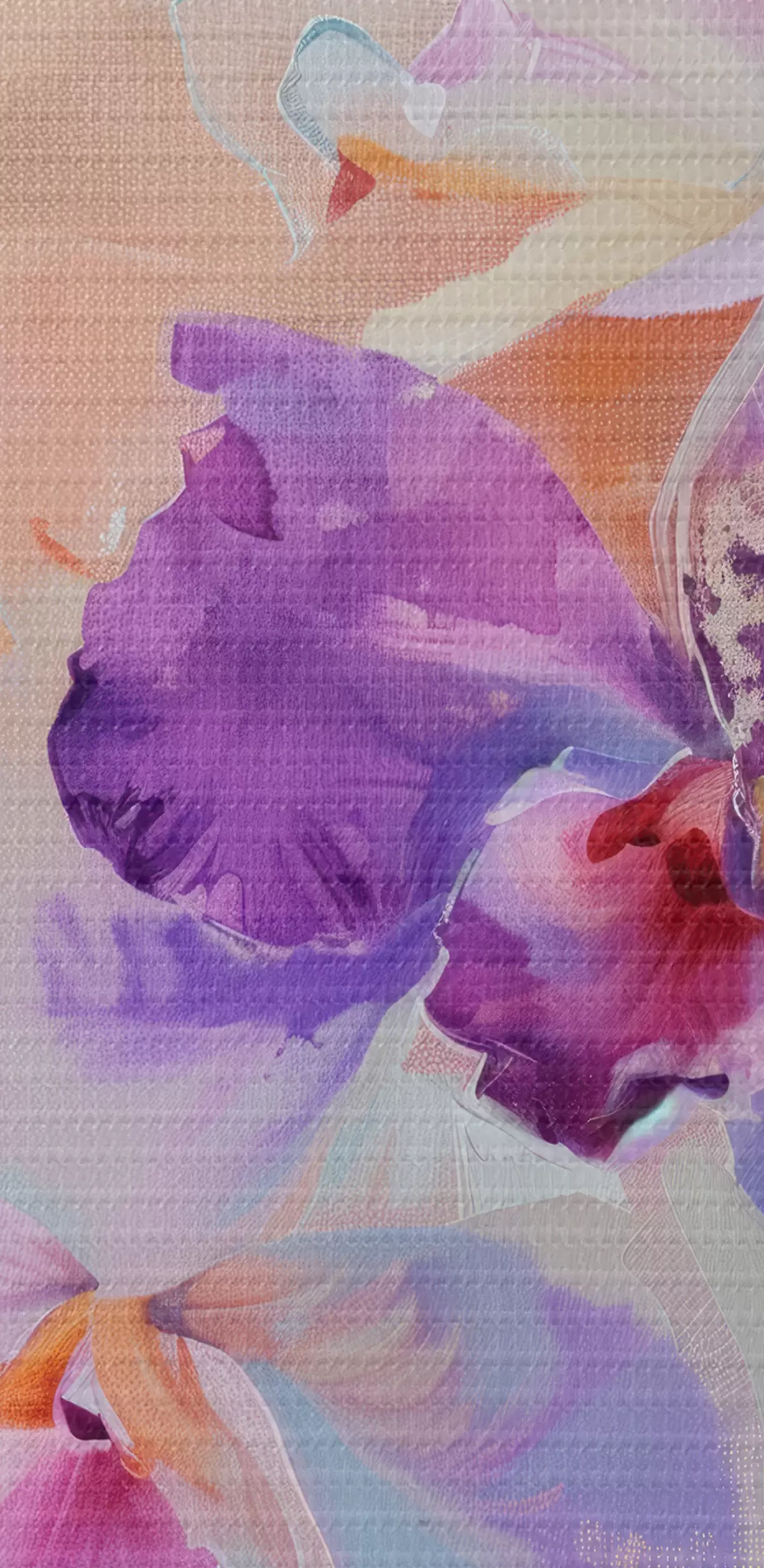 Schilderij Impressionistisch schilderij van orchidee, lichte pastelkleuren, semi-abstracte botanische print, met neutrale achtergrond Art. s39463