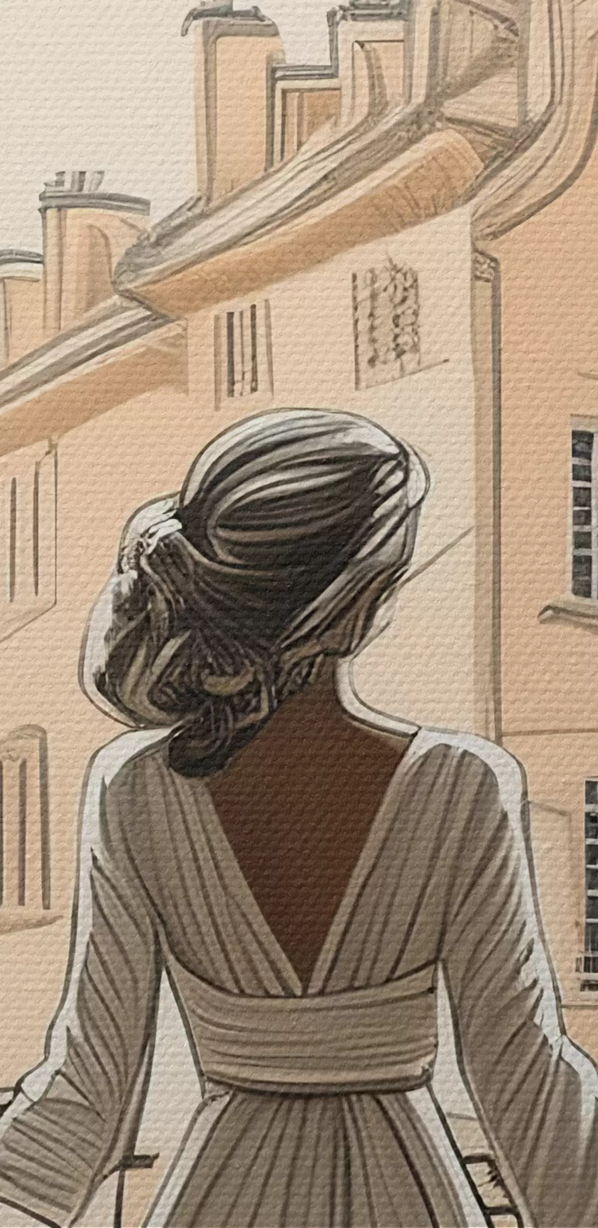 Het schilderij kan direct na ontvangst worden opgehangen. Het schilderij wordt opgespannen op een 2 cm breed houten spieraam.
