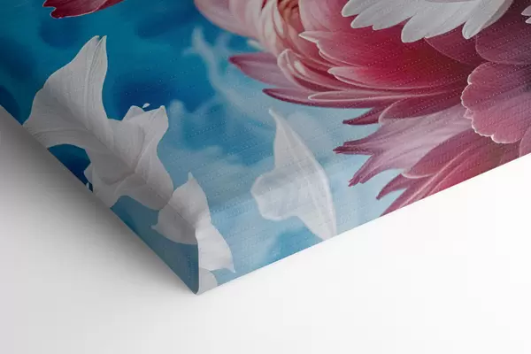 Schilderij Een boeket van grote, levendige roze en witte pioenrozen tegen een blauwe achtergrond Art. s39519