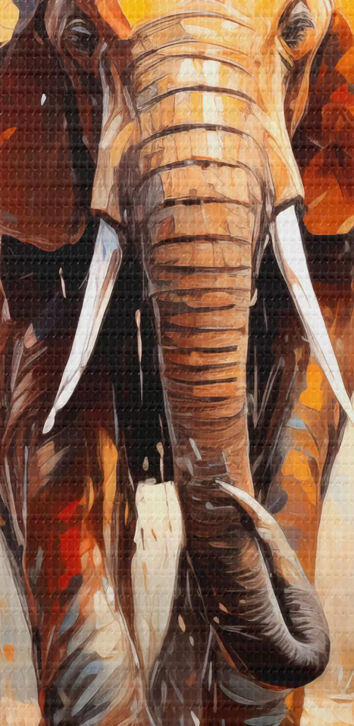 Schilderij Een kudde olifanten tussen de savanne, olieverfschilderij, abstracte kunst Art. s39573
