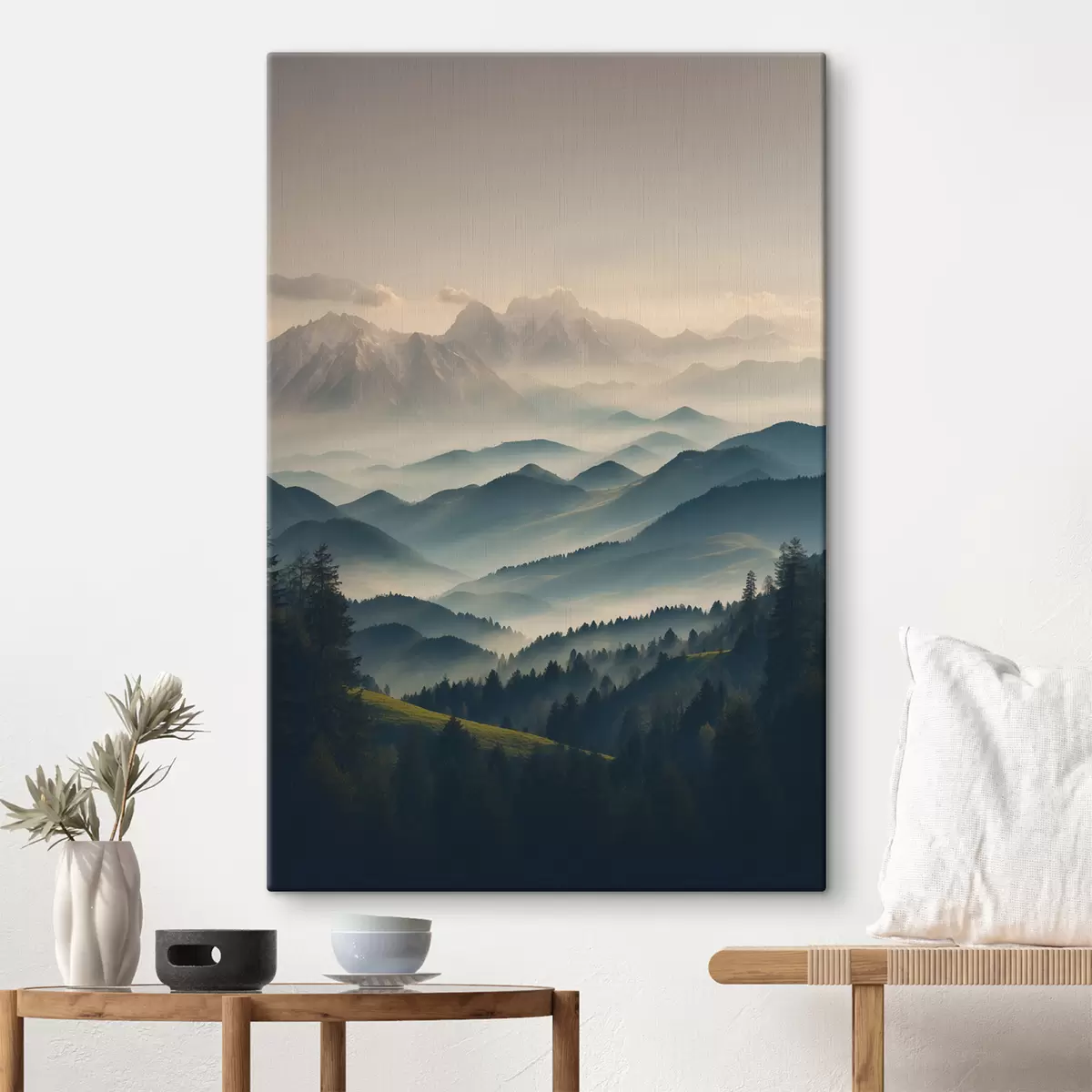 Schilderij Uitzicht op mistige bergen Art. s39596
