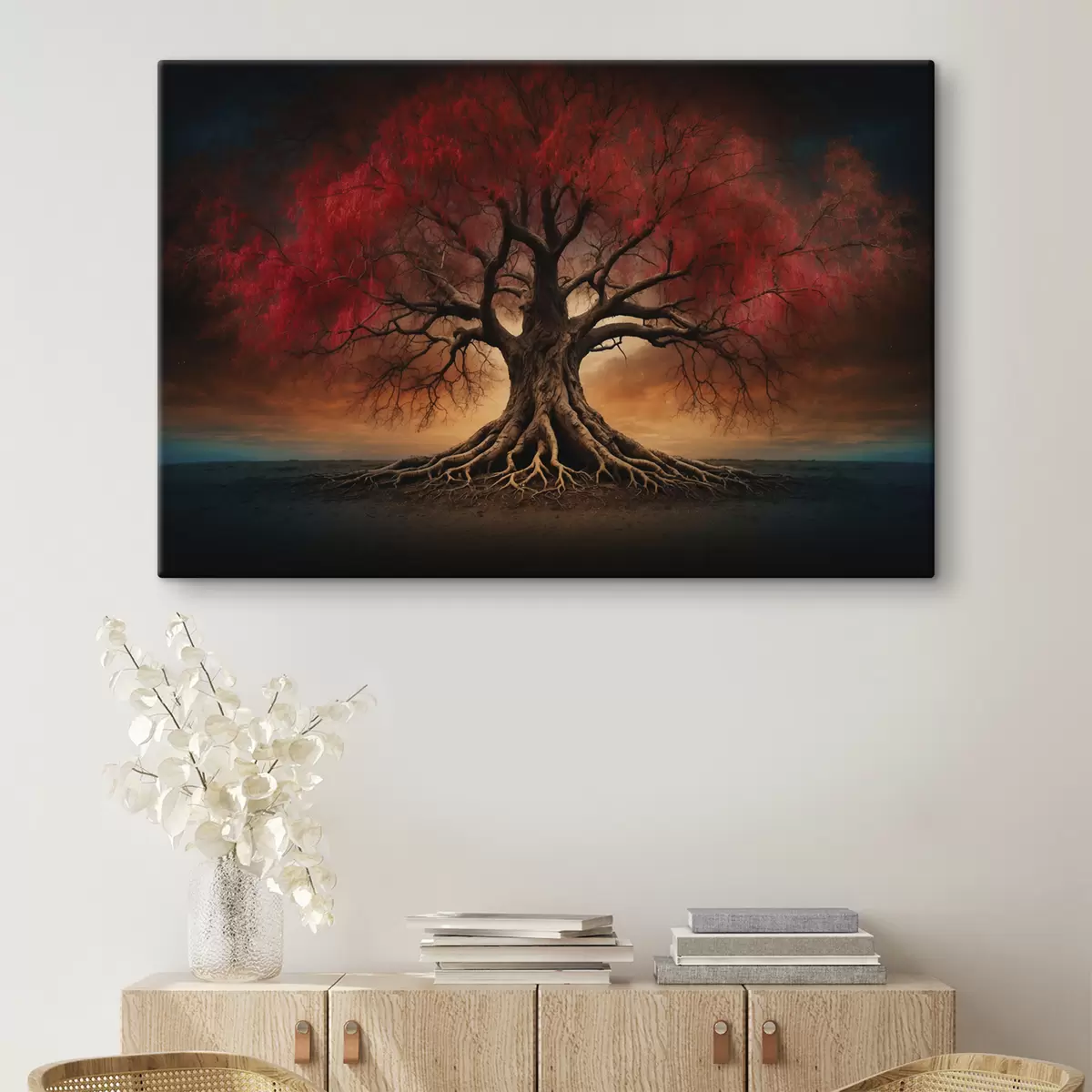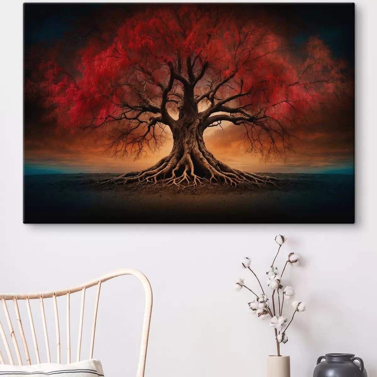 Schilderij Gewortelde boom in het midden van een leeg veld Art. s39614