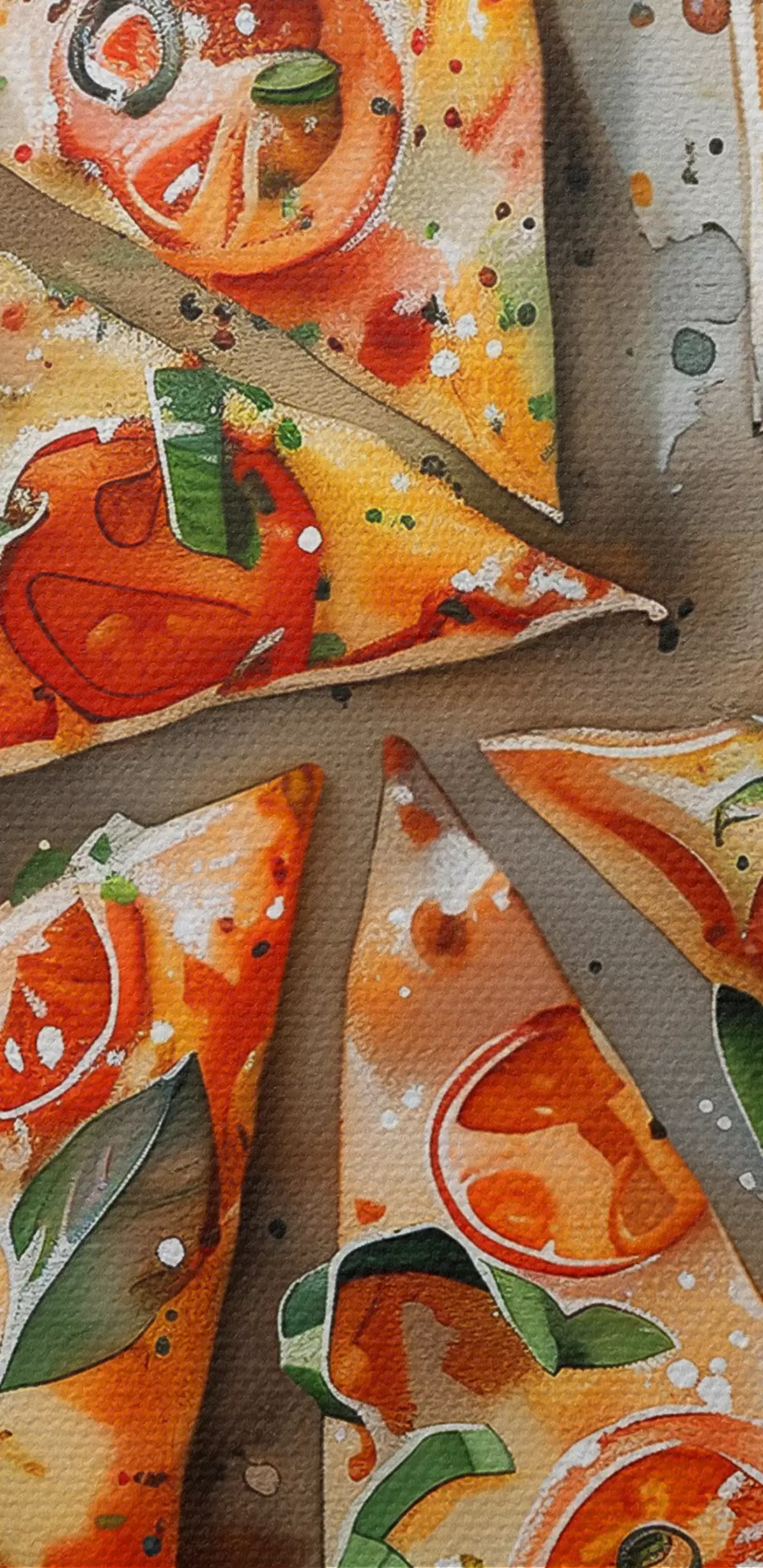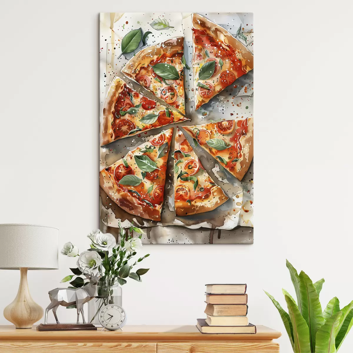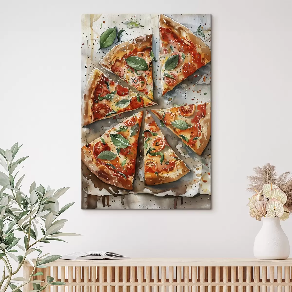 Schilderij Heerlijke Italiaanse pizza, aquarelvoedselkunst, margarita, tomaten Art. s39703