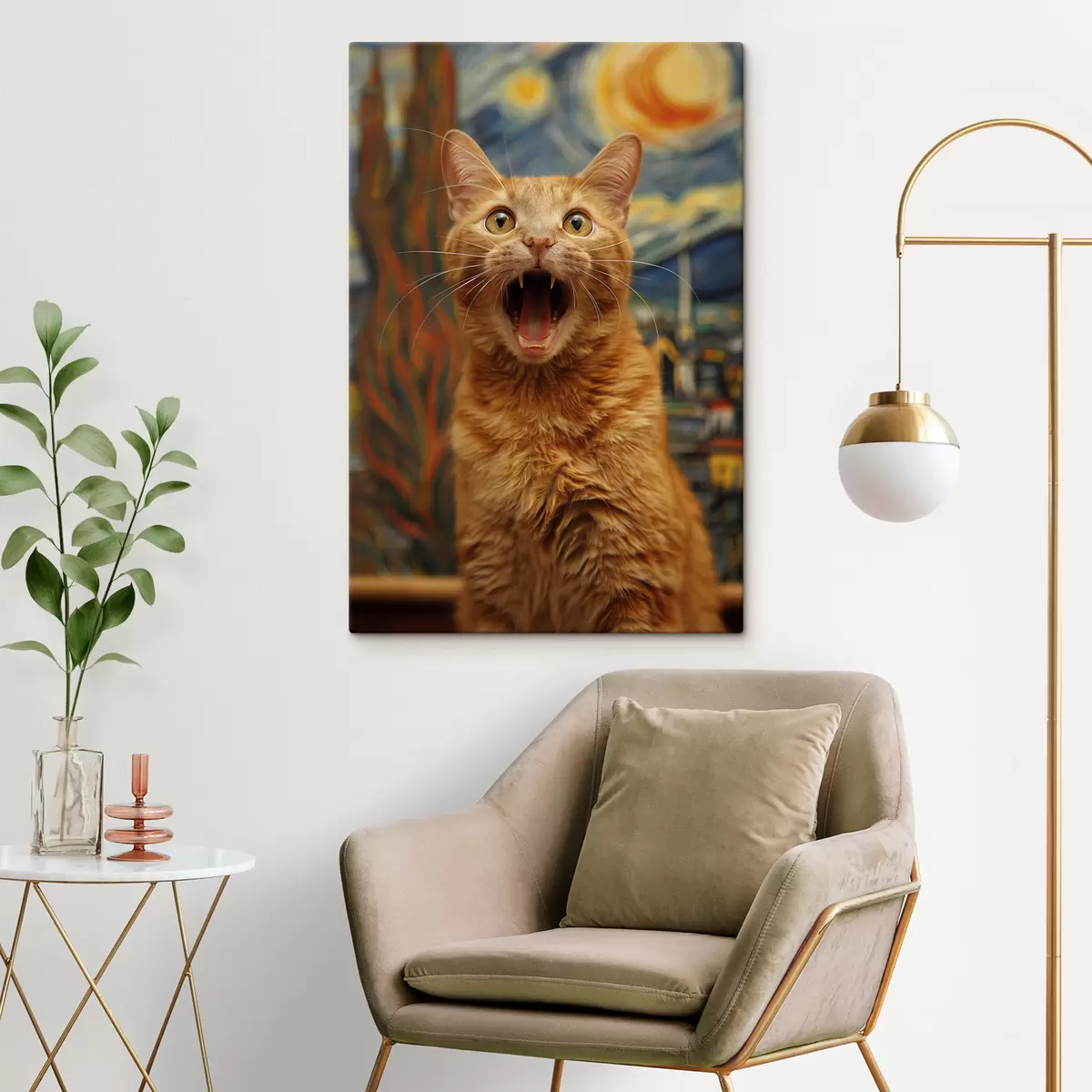 Schilderij Van Gogh-stijl schilderij van 'De Schreeuw' met een kat Art. s39724