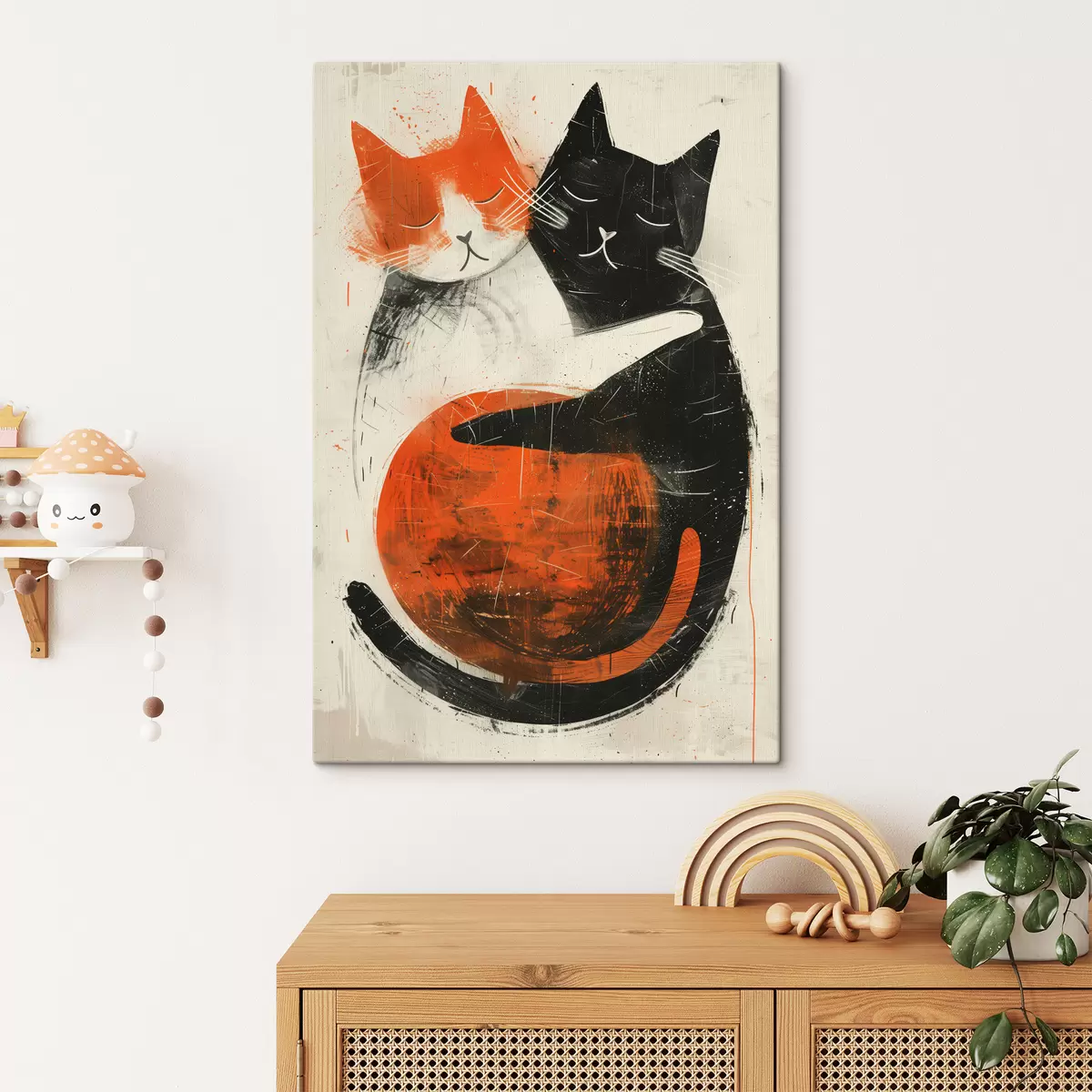 Schilderij Minimalistische inktillustratie van twee schattige katten Art. s39725
