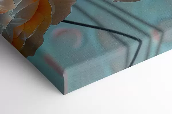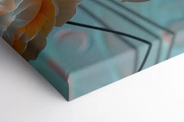 Schilderij Fijne witte en oranje pioenrozen op een blauwe achtergrond Art. s39753