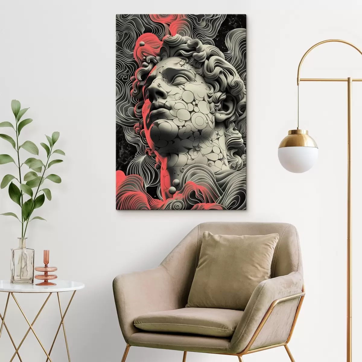 Schilderij Zwart-wit lineaire afbeelding van het hoofd van de Griekse god Apollo in pop-art stijl Art. s39763
