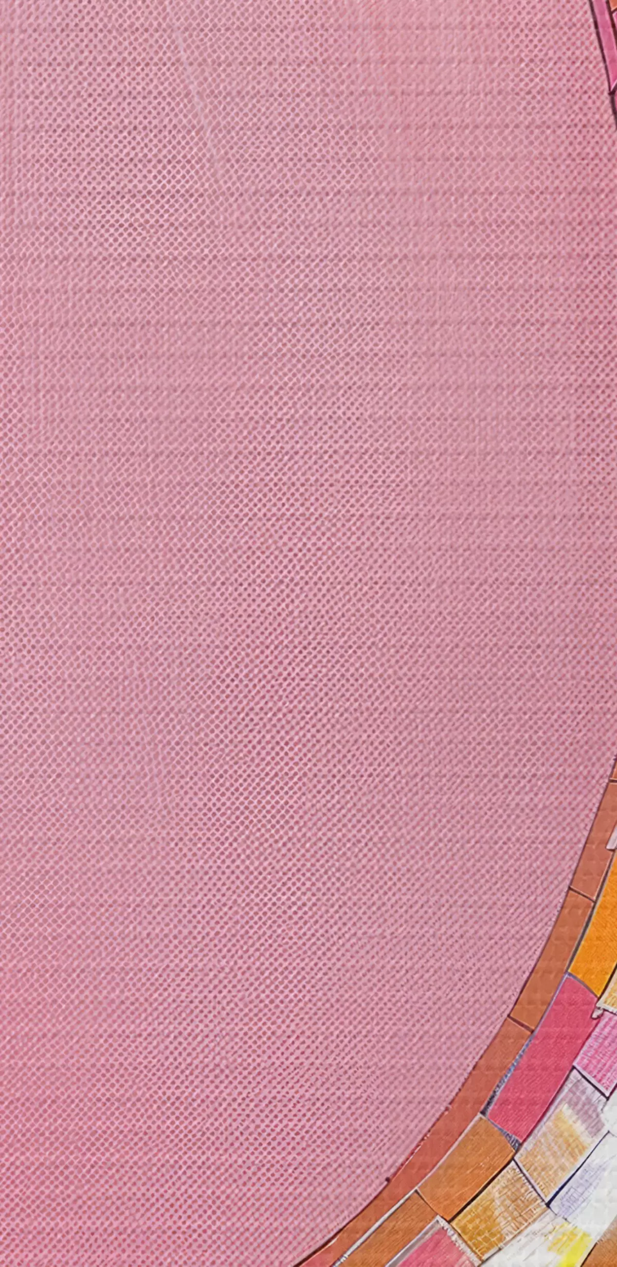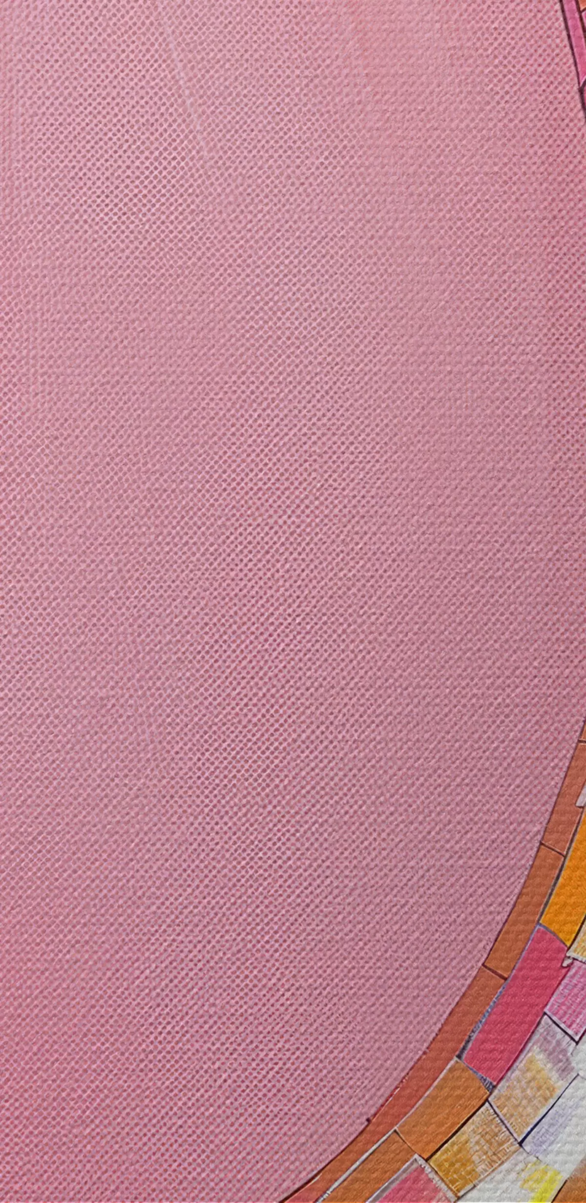 Schilderij Oliegeschilderde banay-discobal met lichtpastelroze achtergrond Art. s39766