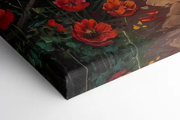 Er zijn drie soorten materiaal te bestellen: Economic Canvas - een dicht en duurzaam materiaal voor digitaal printen, identiek aan schildersdoek, waterdicht oppervlak, realistische weergave van details, materiaal met gemiddelde korrel. Premium Canvas - de textuur lijkt op die van schildersdoek (verweven kleine draden). Zachte, gedetailleerde reproductie van de afbeelding op een mat oppervlak. Eco-Premium - hoogwaardige 100% katoenen stof. Dankzij de natuurlijke katoenvezels is het materiaal duurzaam en slijtvast. Uitstekende kleurweergave en detail.