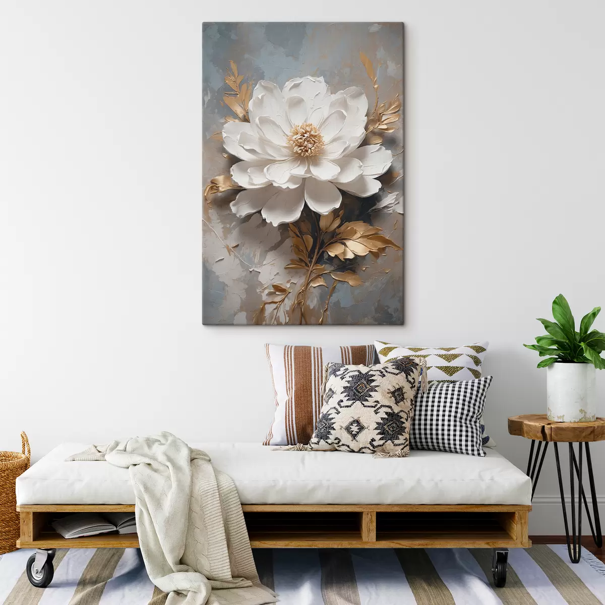 Schilderij Witte bloem met stengels op abstracte achtergrond Art. s39865